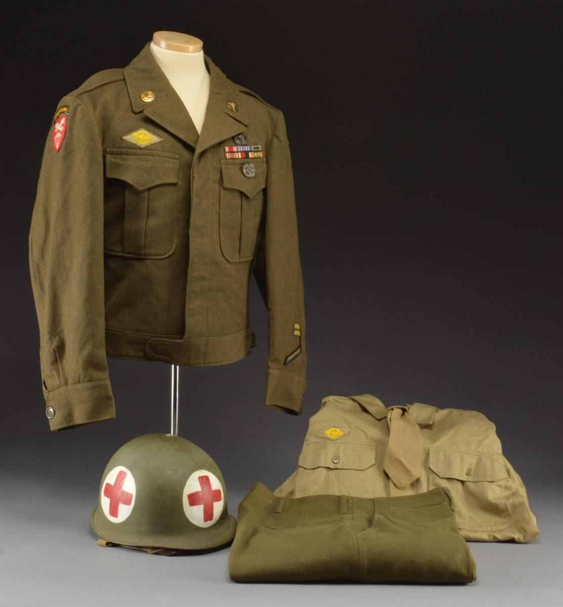 Lot 1641 WWII US MEDICS M1 HELMET & UNIFORM.