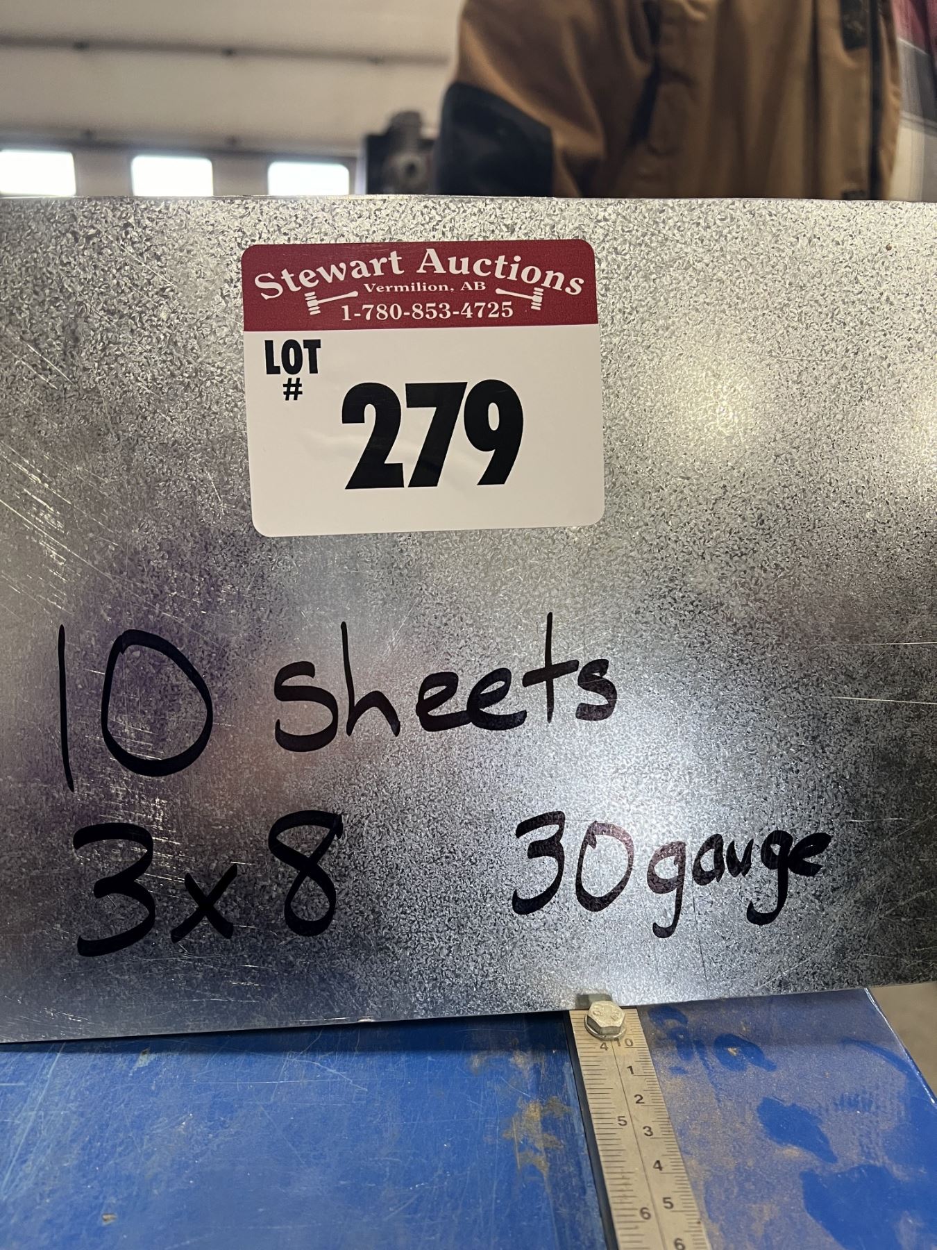 Lot 279 10 Sheets of Sheet Metal - 3 x 8 - 30gauge