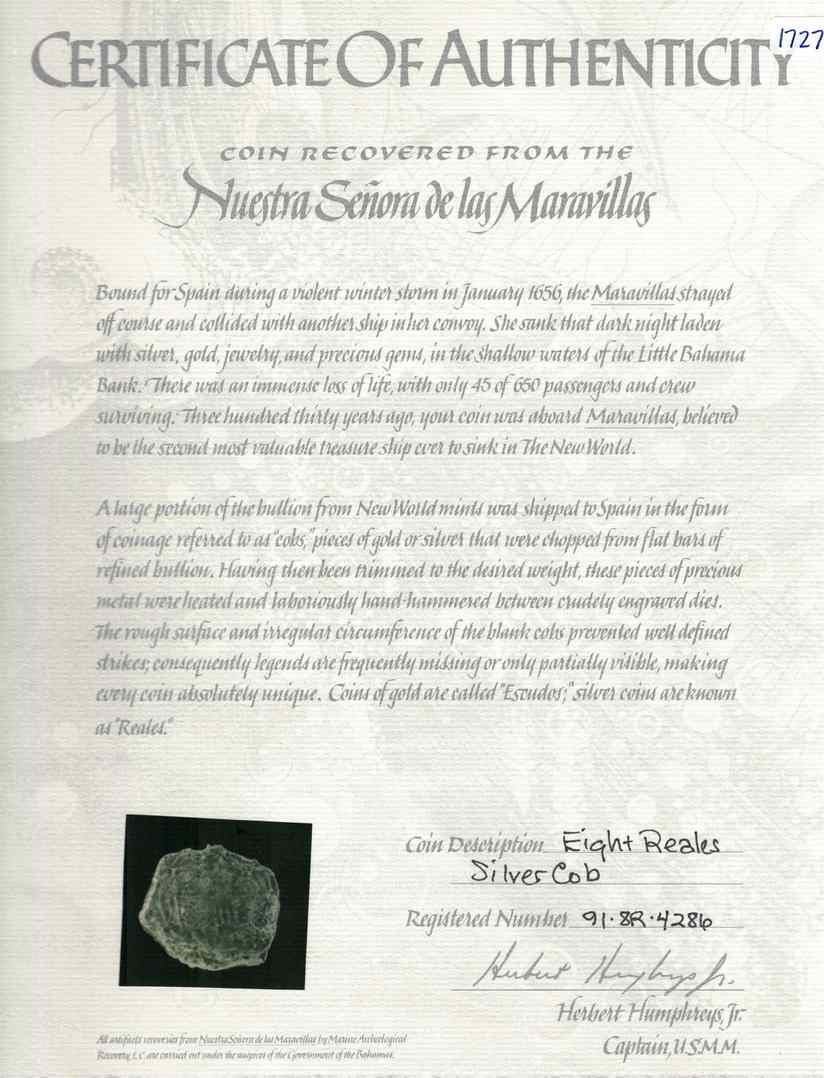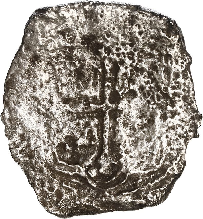 MEXICO, Mexico City, cob 8 reales, Philip IV, assayer not visible, ex-MAREX. KM-45; Cal-Type 319. 14.20 grams. Corroded with some shield and cross detail showing. With original MAREX tag and photo-certificate 91-8R-4286. Recovered from: Maravillas, sunk in 1656 off Grand Bahama Island