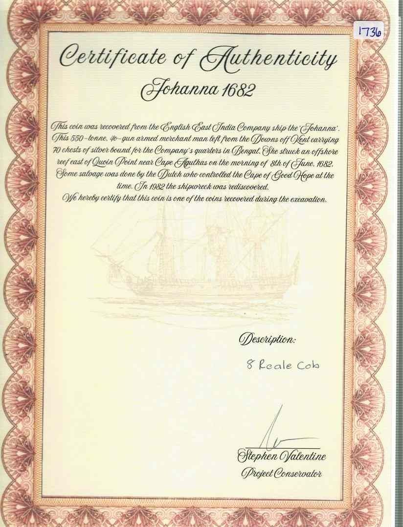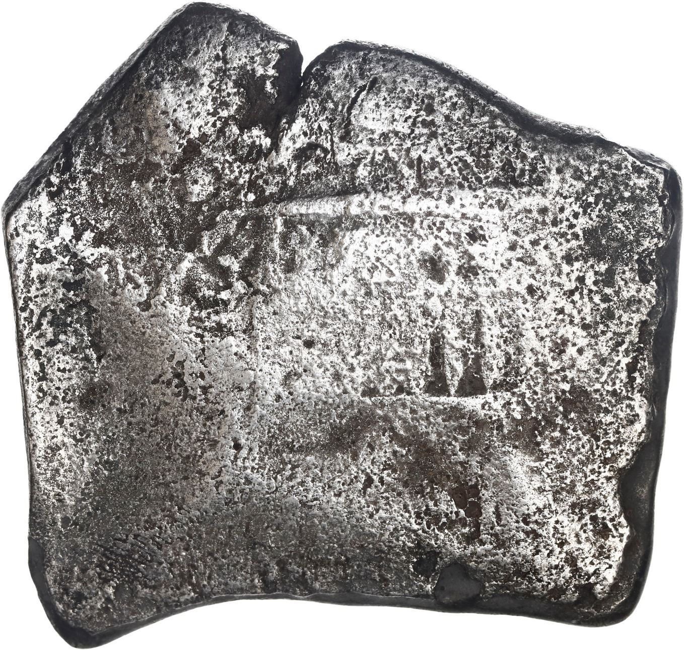 MEXICO, Mexico City, cob 8 reales, Charles II, assayer L. S-M21; KM-46; Cal-Type 108. 22.25 grams. Broad, irregularly shaped piece with partial shield and cross amid flat areas, thin edge-crack (as made). Pedigreed to the Steve Valentine Collection, with original certificate from the salvor/conservator. Recovered from: Joanna, sunk in 1682 off South Africa