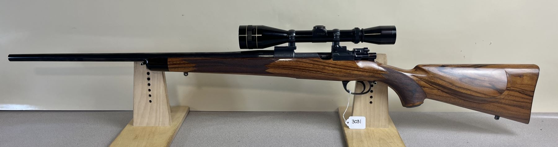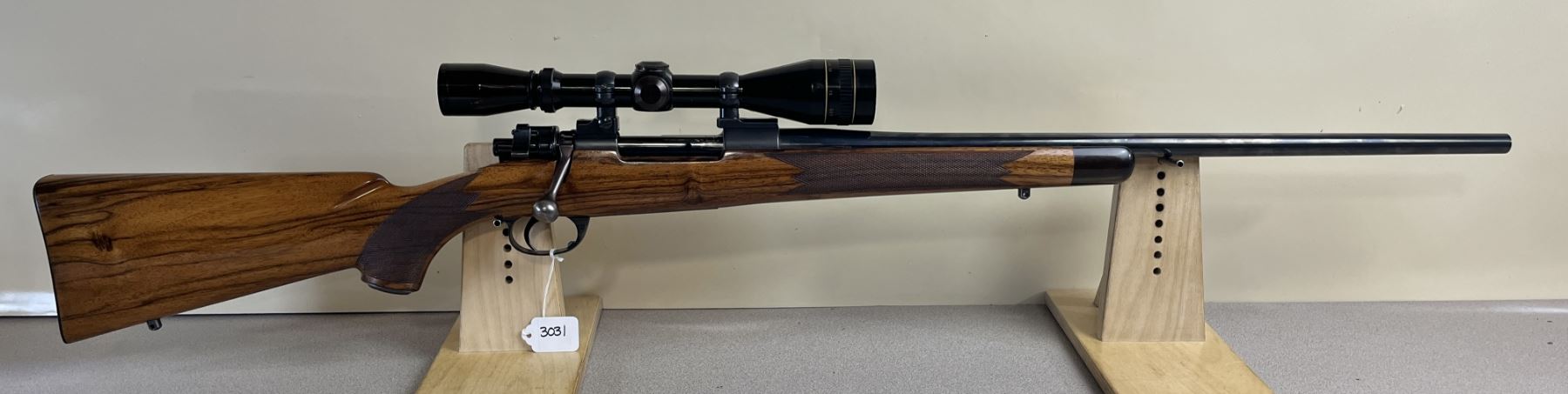 CONDITION: VG OVERALL INCL BORE. SPECS: 23IN SHILEN BBL. FRENCH WALNUT STOCK W/ 20LPI CHECKERING. CUSTOM ADJUSTABLE TRIGGER. CUSTOM HINGE FLOOR PLATE. NIEDNER BUTT PLATE. EXTRAS: LEUPOLD 3-9 SCOPE. CLEAR W/ DUPLEX CROSSHAIRS. S/N: 6086.