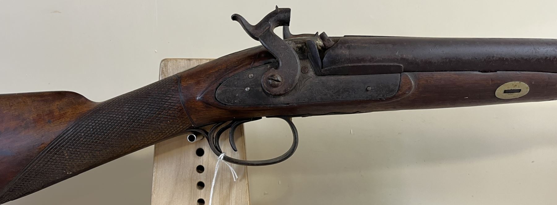 CONDITION: P OVERALL INCL BORES. HAMMER STUCK IN COCK POSITION. TRIGGERS DO NOT WORK. SPECS: 31IN SXS BBLS. EXTRAS: NONE. S/N: NONE.