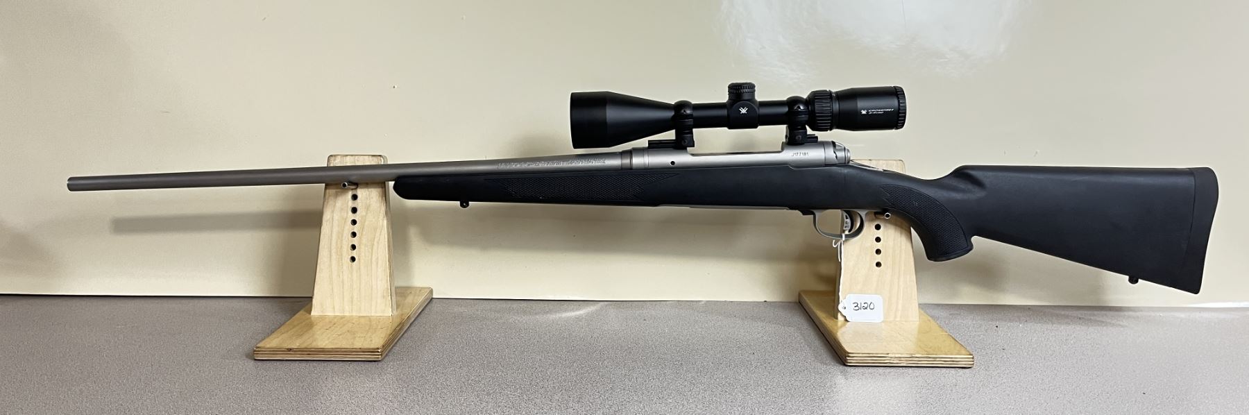 CONDITION: VG INCL BORE. SPECS: 24 IN STAINLESS BBL. EXTRAS: VORTEX CROSSFIRE 3-9X50 CLEAR WITH CROSSHAIRS. S/N: J177181