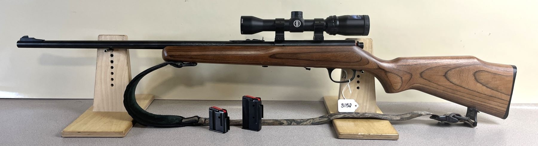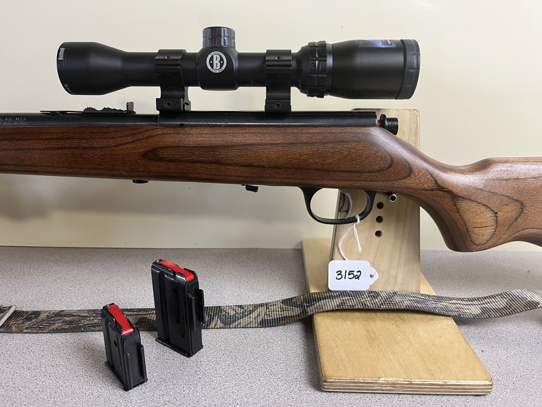 CONDITION: VG OVERALL INCL BORE. SPECS: 22IN BBL W/ IRON SIGHTS. INCL 2X MAGS. EXTRAS: BUSHNELL 1.5-4.5 X 32 SCOPE. CLEAR W/ DUPLEX CROSSHAIRS. CAMO SLING. S/N: MM97343B.