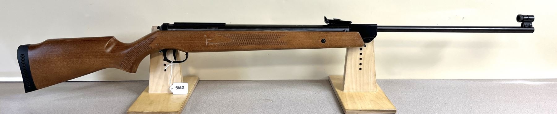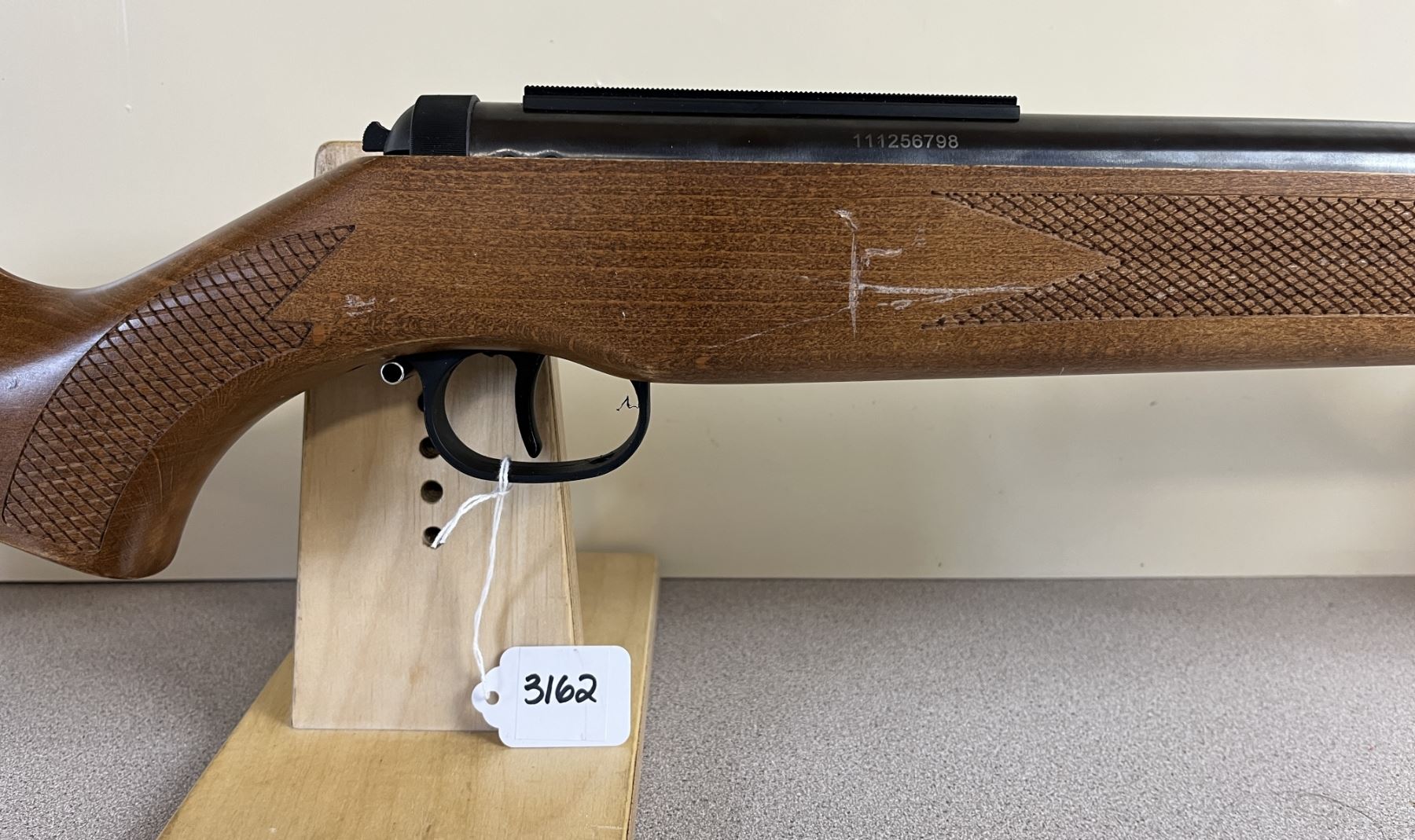 CONDITION: G-VG OVERALL. BORE VG. LARGE SCUFF RIGHT SIDE OF STOCK (SEE PICS). SPECS: 19.5IN BBL W/ IRON SIGHTS. EXTRAS: NONE. S/N: 111256798.