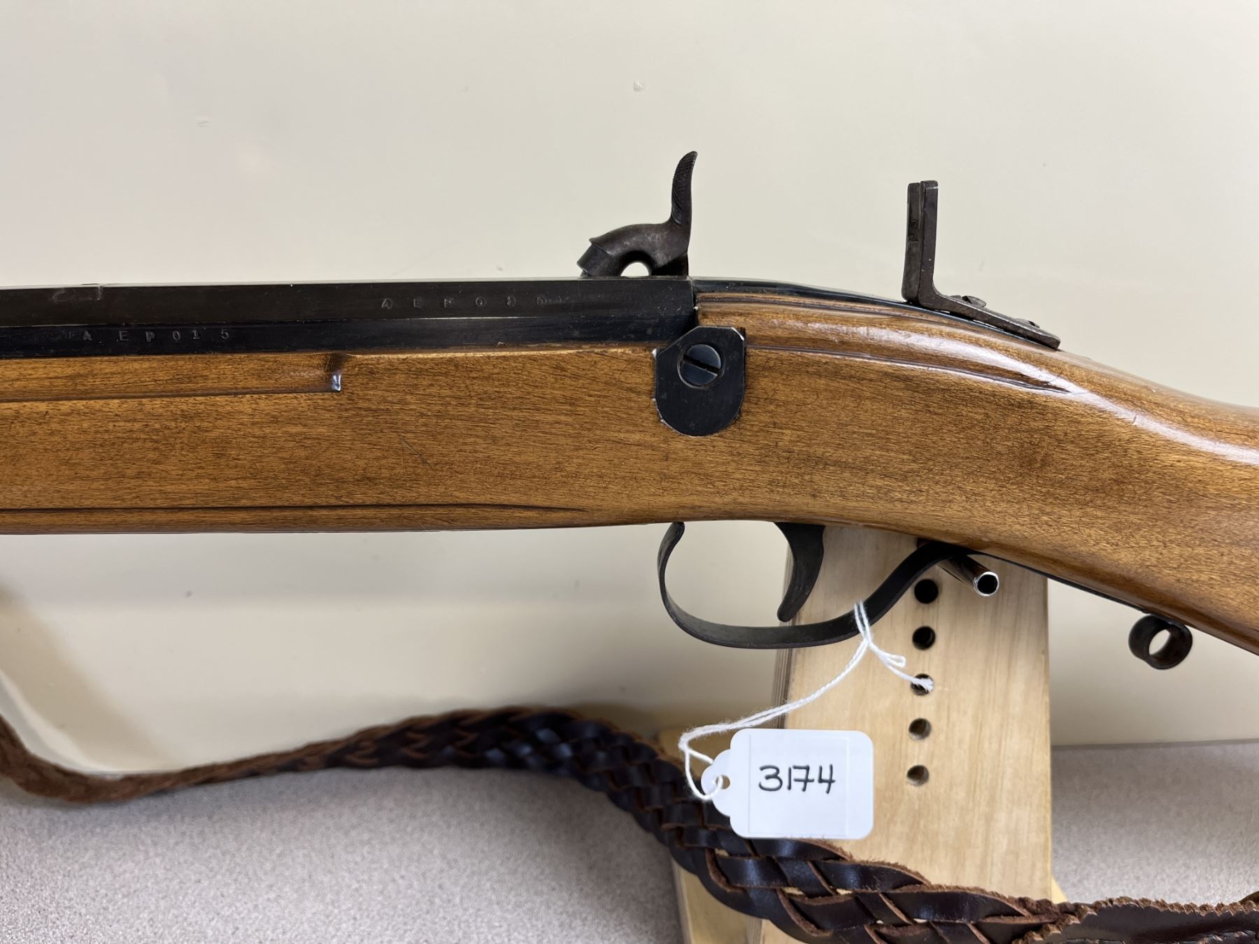 CONDITION: F OVERALL INCL BORE. FIT & FINISH SLIGHTY CRUDE. HOMEMADE (?). SPECS: 32IN OCTAGON BBL. EXTRAS: LEATHER SLING. S/N: AEP015.