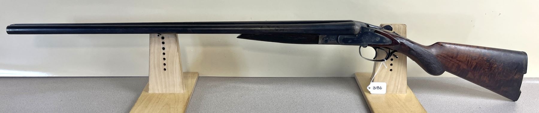 CONDITION: P-F OVERALL. BORE G. CRACK AT WRIST. ACTION DOES NOT LOCK. RECOIL PAD BROKEN. SPECS: 30IN SXS BBLS. FULL BY FULL CHOKE. EXTRAS: NONE. S/N: 7114.