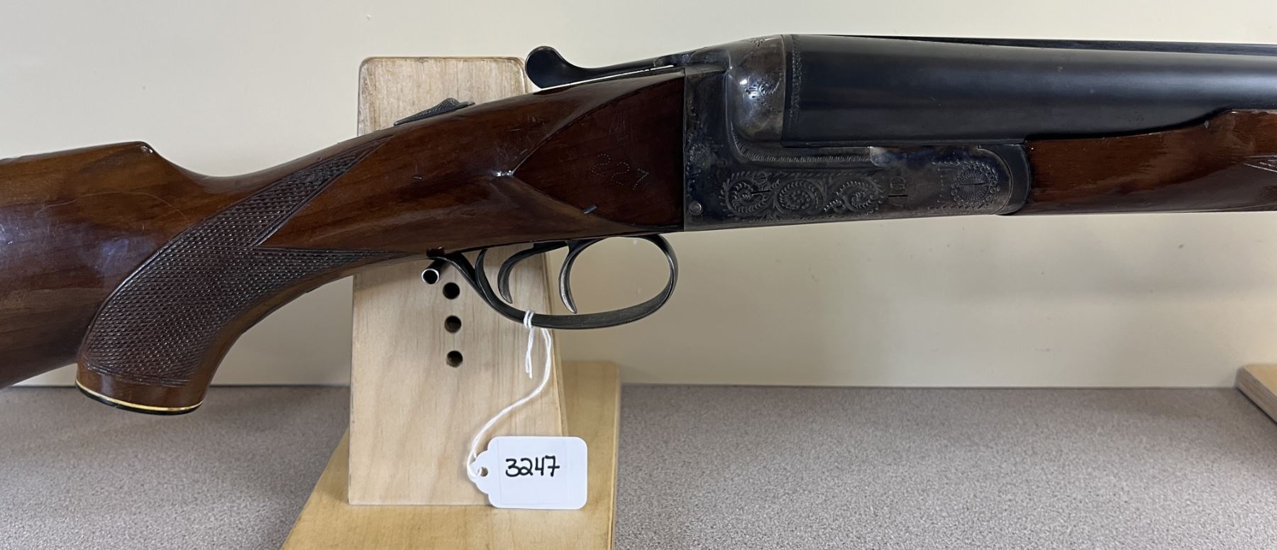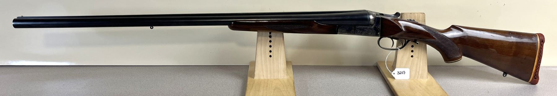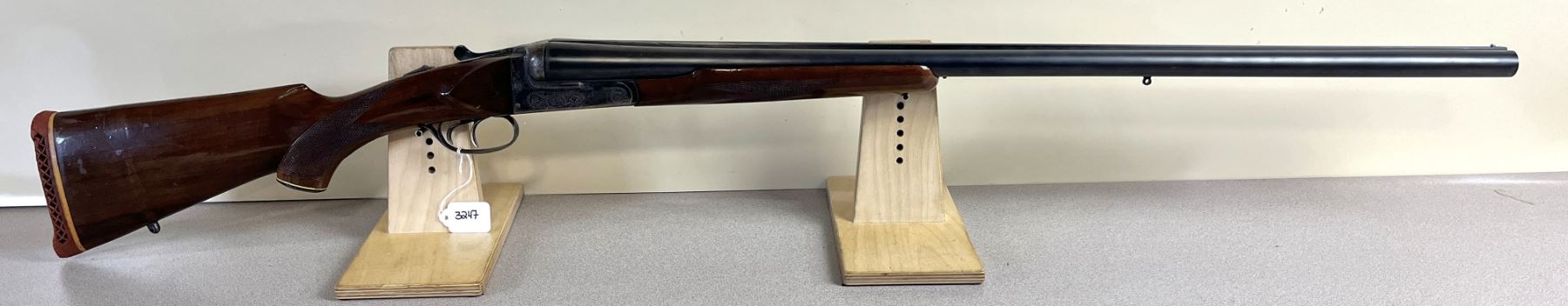 CONDITION: G-VG OVERALL. BORE G. CRACK LEFT SIDE OF FOREND. RECOIL PAD WORN OUT. SPECS: 32 1/4IN SXS BBLS. FULL BY FULL CHOKES. 3 1/2IN CHAMBER. EXTRAS: NONE. S/N: 57797.