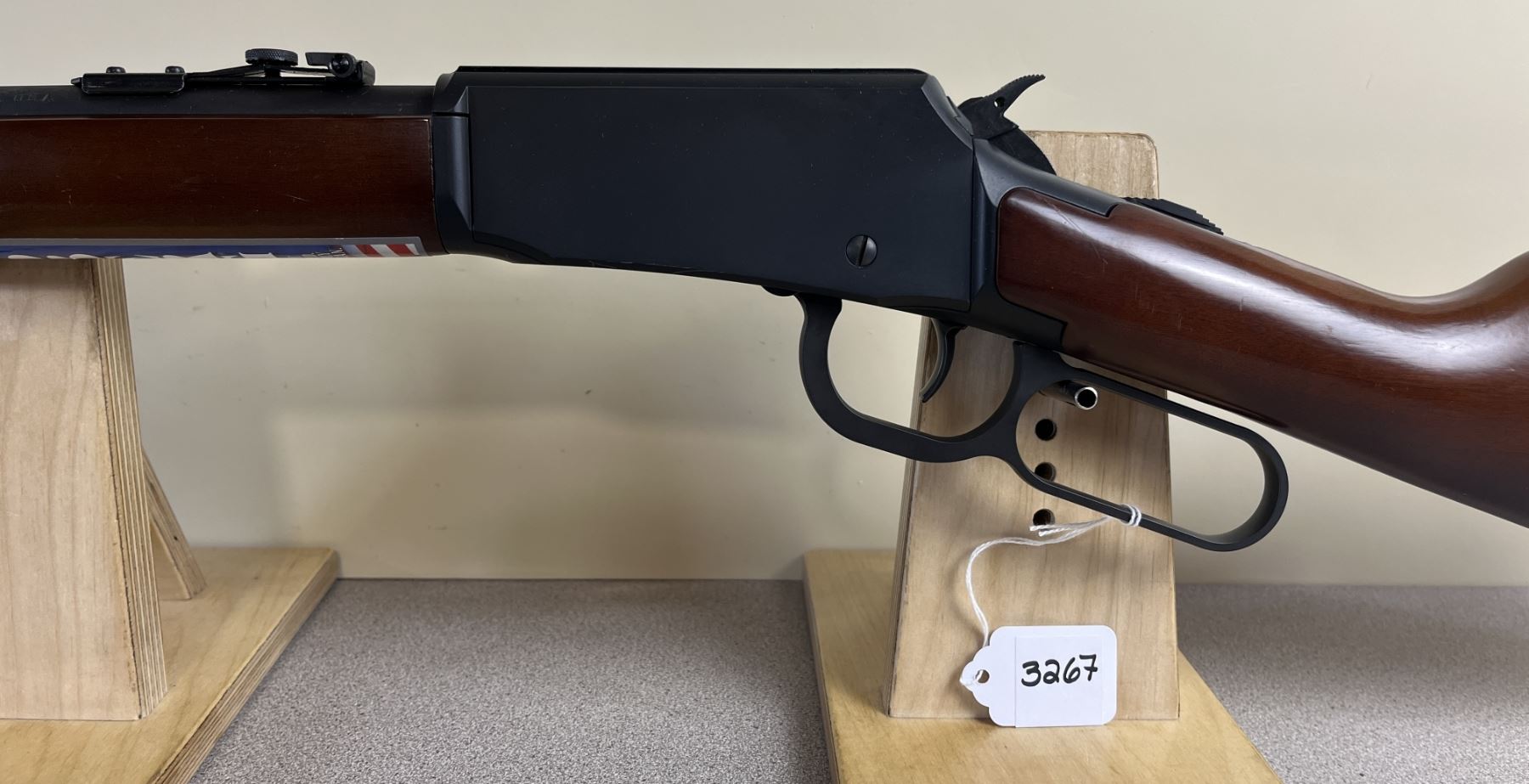 CONDITION: VG OVERALL INCL BORE. SPECS: 18IN BBL W/ IRON SIGHTS. EXTRAS: ORIGINAL BOX & MANUAL. S/N: LA0007994.