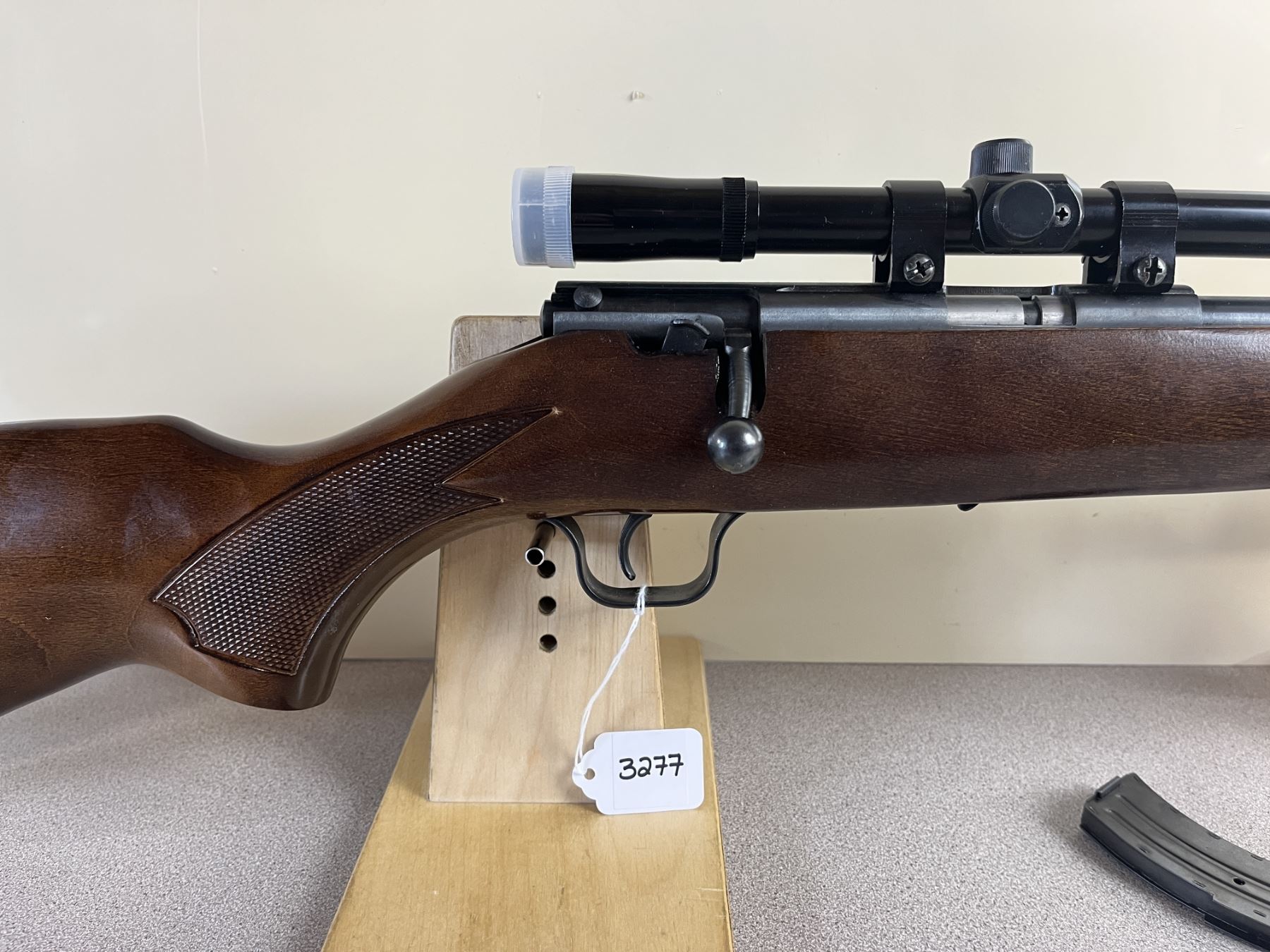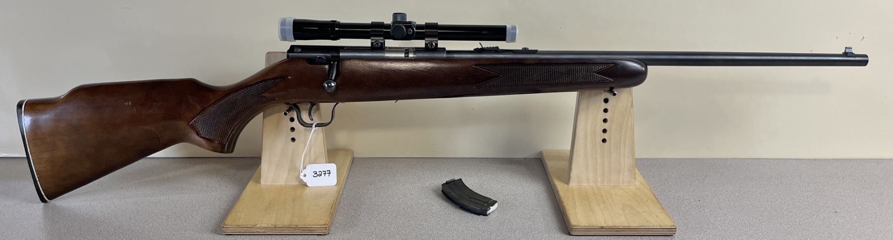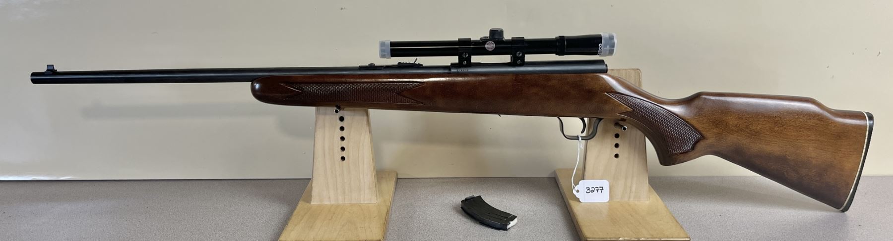 CONDITION: VG OVERALL INCL BORE. SPECS: 20 1/5IN BBL W/ IRON SIGHTS. INCL 1X MAG. EXTRAS: TASCO SCOPE W/ LENSE CAPS. CLEAR W/ CROSSHAIRS. S/N: 216412.