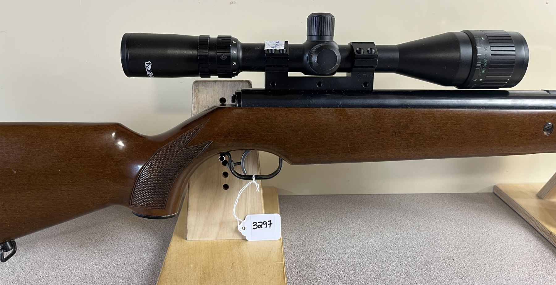 CONDITION: G OVERALL. BORE VG. CRACK AT WRIST. SPECS: 18 1/4IN BBL. EXTRAS: TASCO 2.5-10 SCOPE. CLEAR W/ CROSSHAIRS. S/N: 59606.