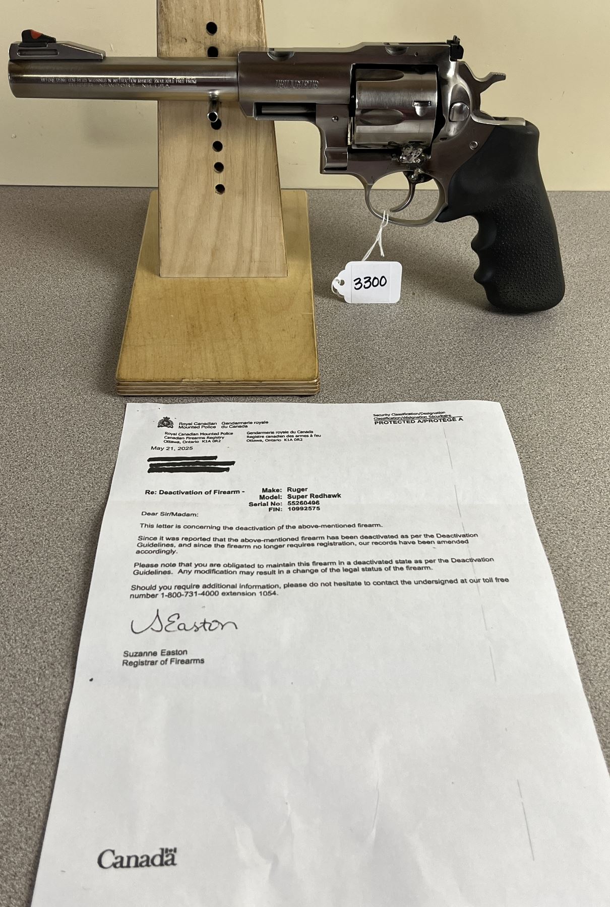 Lot 3300 RUGER SUPER REDHAWK IN .44 MAG - DEACTIVATED - NO PAL REQUIRED