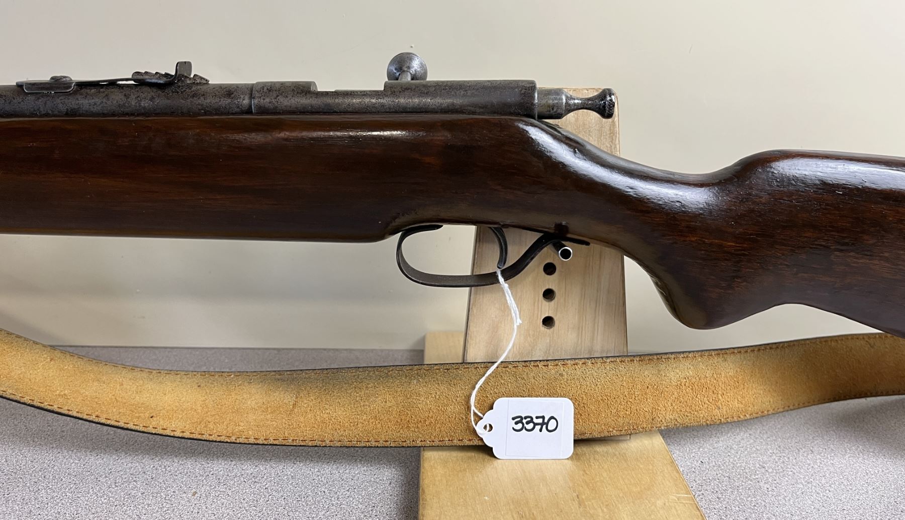 CONDITION: F-G OVERALL. BORE G. SPECS: 27IN BBL W/ IRON SIGHTS. EXTRAS: LEATHER SLING. S/N: NONE.