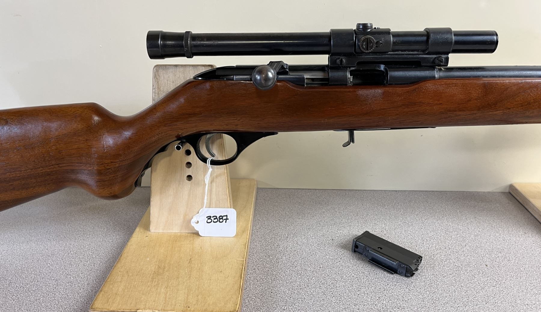 CONDITION: G OVERALL. BORE VG. SPECS: 18IN BBL. INCL 1X MAG. EXTRAS: WEAVER B4 SCOPE. CLEAR W/ CROSSHAIRS. S/N: 84446.