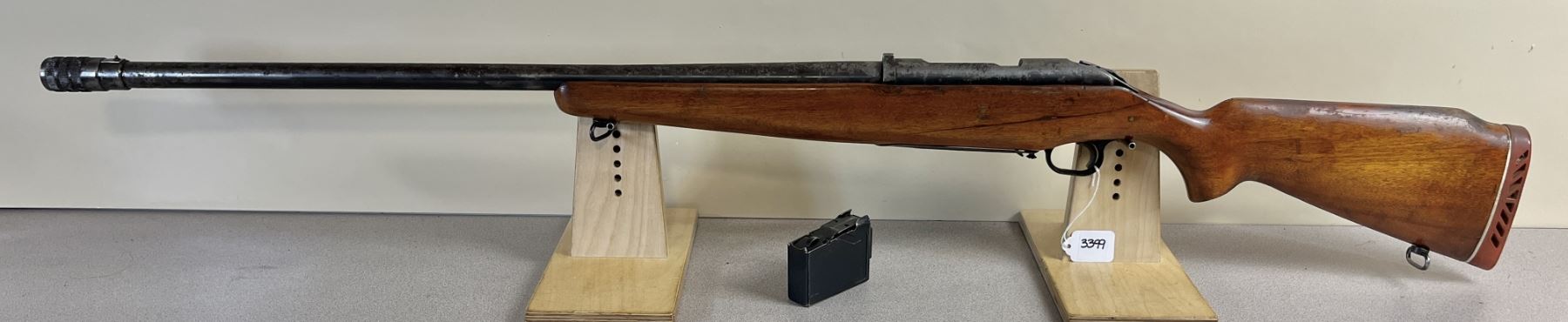CONDITION: P-F OVERALL. BORE VG & MIRROR LIKE. SIGNIFICANT PITTING THROUGHOUT. LARGE CRACK IN STOCK. SPECS: 28IN BBL. ADJUSTABLE CHOKE. INCL 1X MAG. EXTRAS: NONE. S/N: NONE.