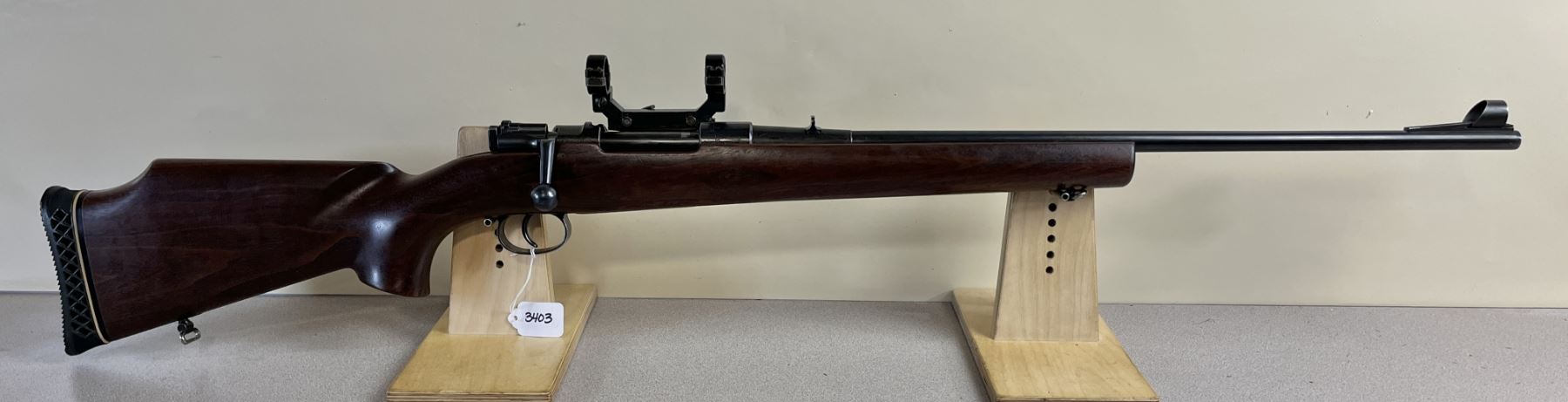 CONDITION: G OVERALL. BORE VG. SPECS: 24IN BBL W/ IRON SIGHTS. EXTRAS: SIDE MOUNTED SCOPE RINGS. S/N: 978.