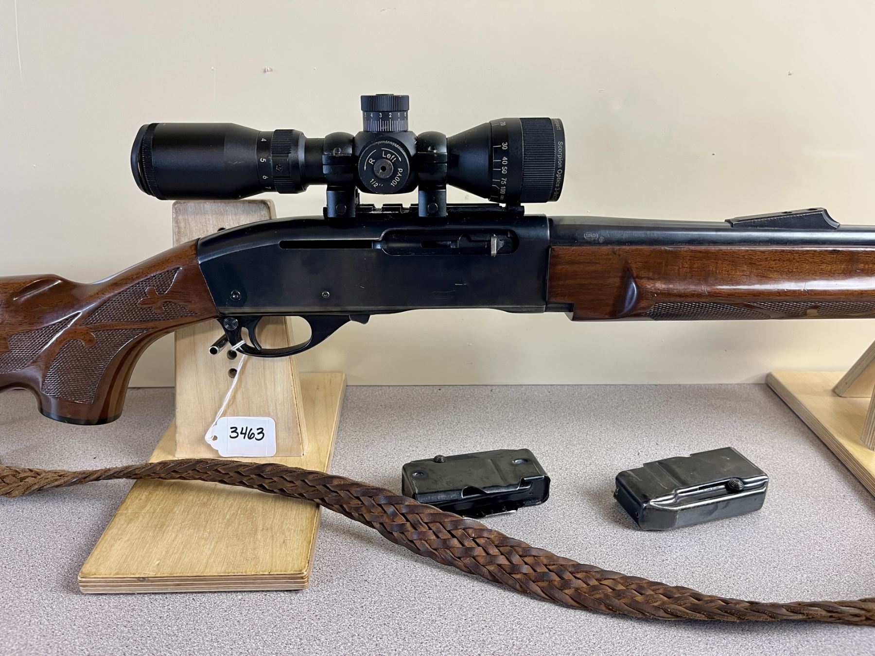 CONDITION: G OVERALL INCL BORE. SPECS: 18 3/4IN BBL W/ IRON SIGHTS. INCL 2X MAG. EXTRAS: SCORPION 3-9 X 32 COMPACT SCOPE. CLEAR W/ RANGE FINDING RETICLE. LEATHER SLING. S/N: 8586889.