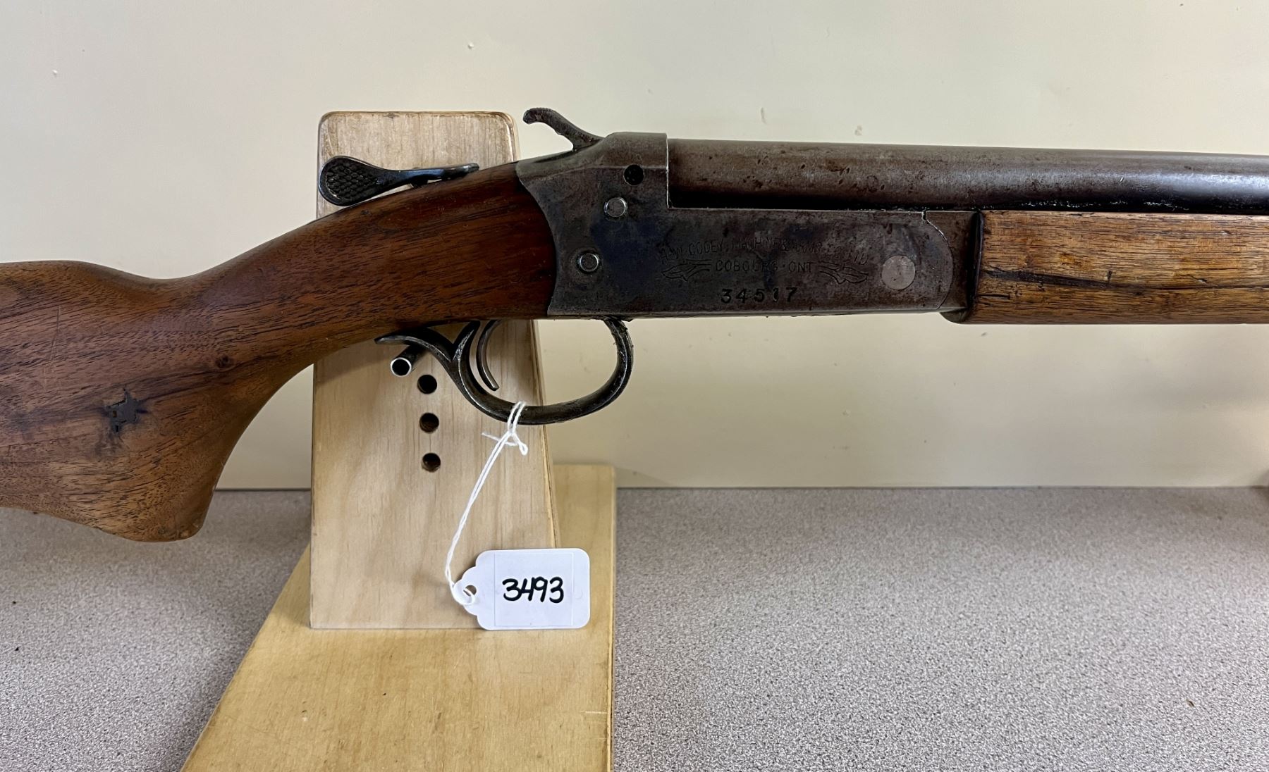 CONDITION: F OVERALL. BORE G. SMALL CRACK AT TANG. RECOIL PLATE CHIPPED. SPECS: 30IN BBL. FULL CHOKE. 2 3/4IN CHAMBER. EXTRAS: NONE. S/N: 34517.