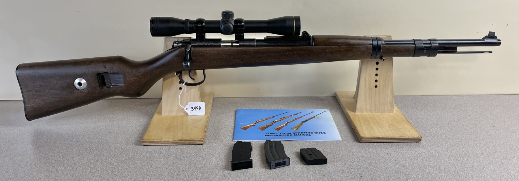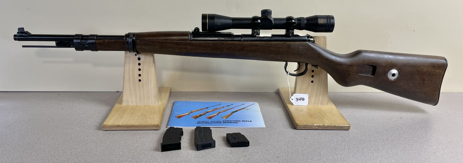 CONDITION: G-VG OVERALL INCL BORE. SPECS: 20.5IN BBL. BELL 4 X 32 SCOPE. CLEAR W/ CROSSHAIRS. INCL 3X MAGS. EXTRAS: ORIGINAL MANUAL. S/N: 1390449-13-398.