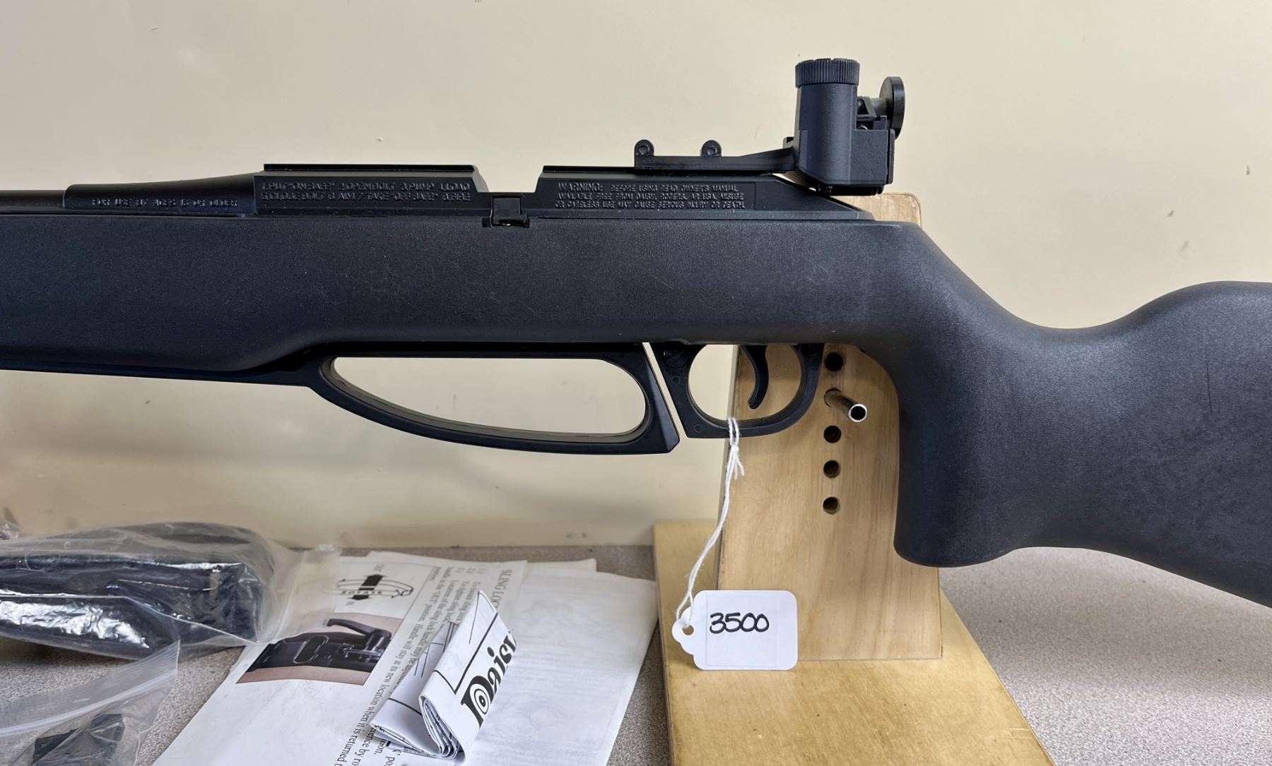 CONDITION: VG OVERALL INCL BORE. SPECS: 22IN BBL W/ IRON SIGHTS. EXTRAS: NYLON STRAP. MANUALS. 5X PELLET CLIPS. STOCK INSERTS. S/N: 081800235.