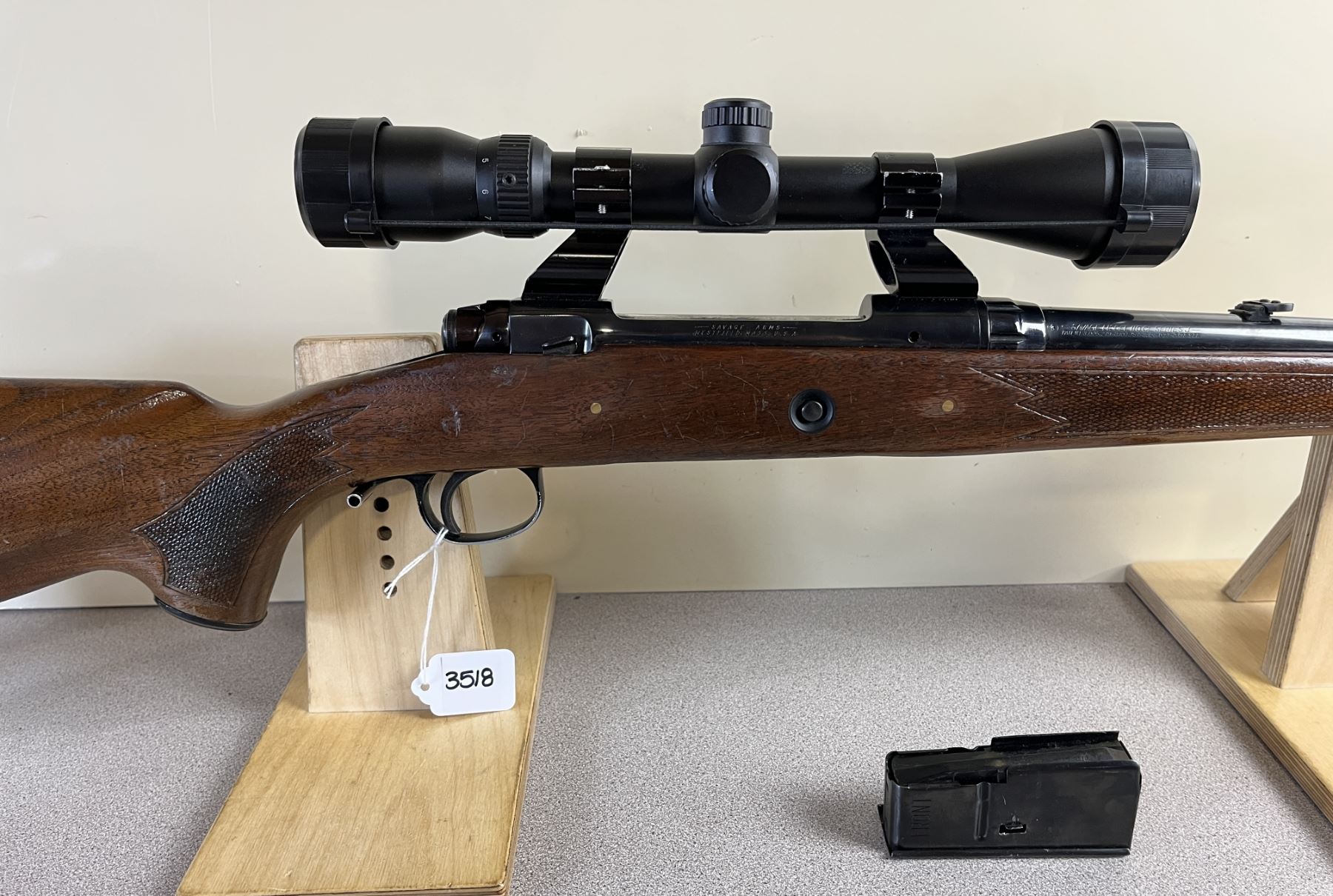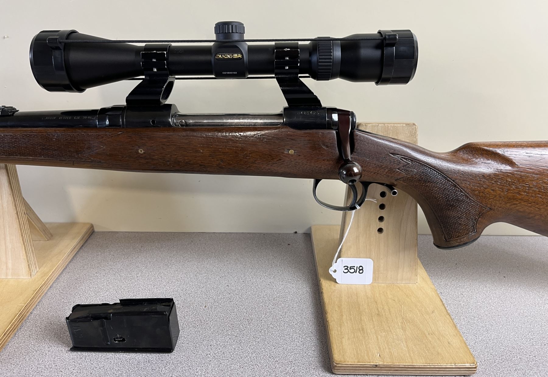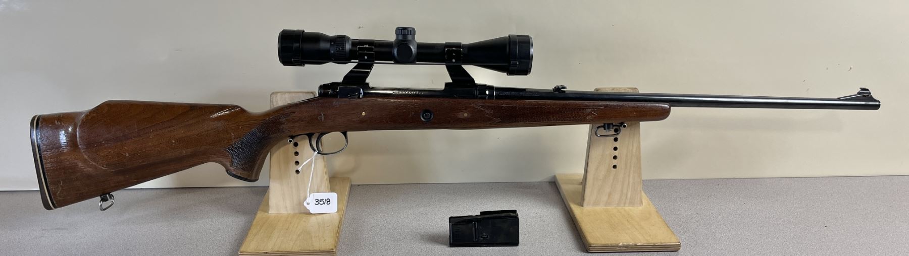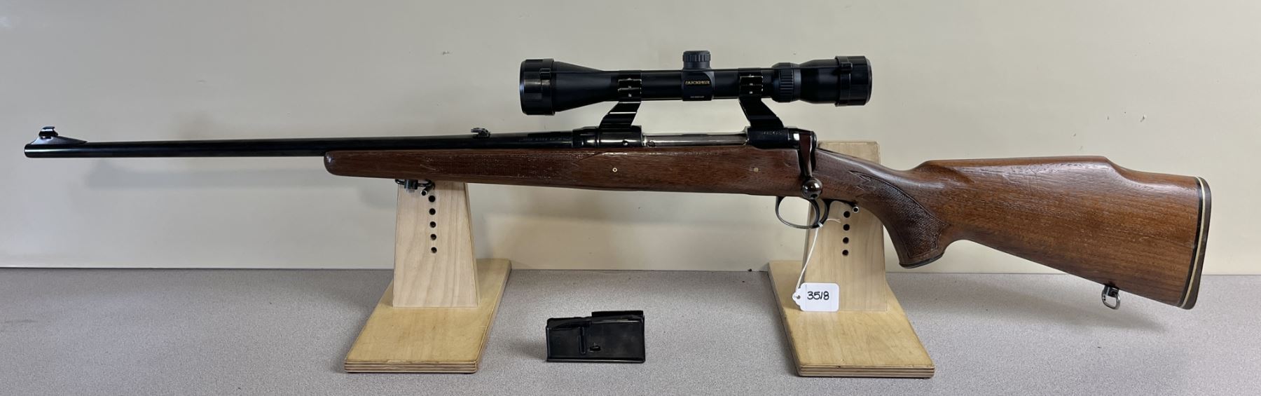 CONDITION: F-G OVERALL. BORE G. SPECS: 22IN BBL W/ IRON SIGHTS. INCL 1X MAG. EXTRAS: BUCKNER 3-9 X 40 SCOPE. CLEAR W/ CROSSHAIRS. S/N: B481425.