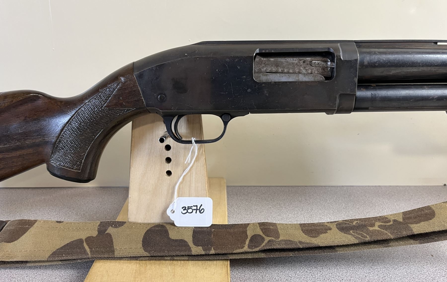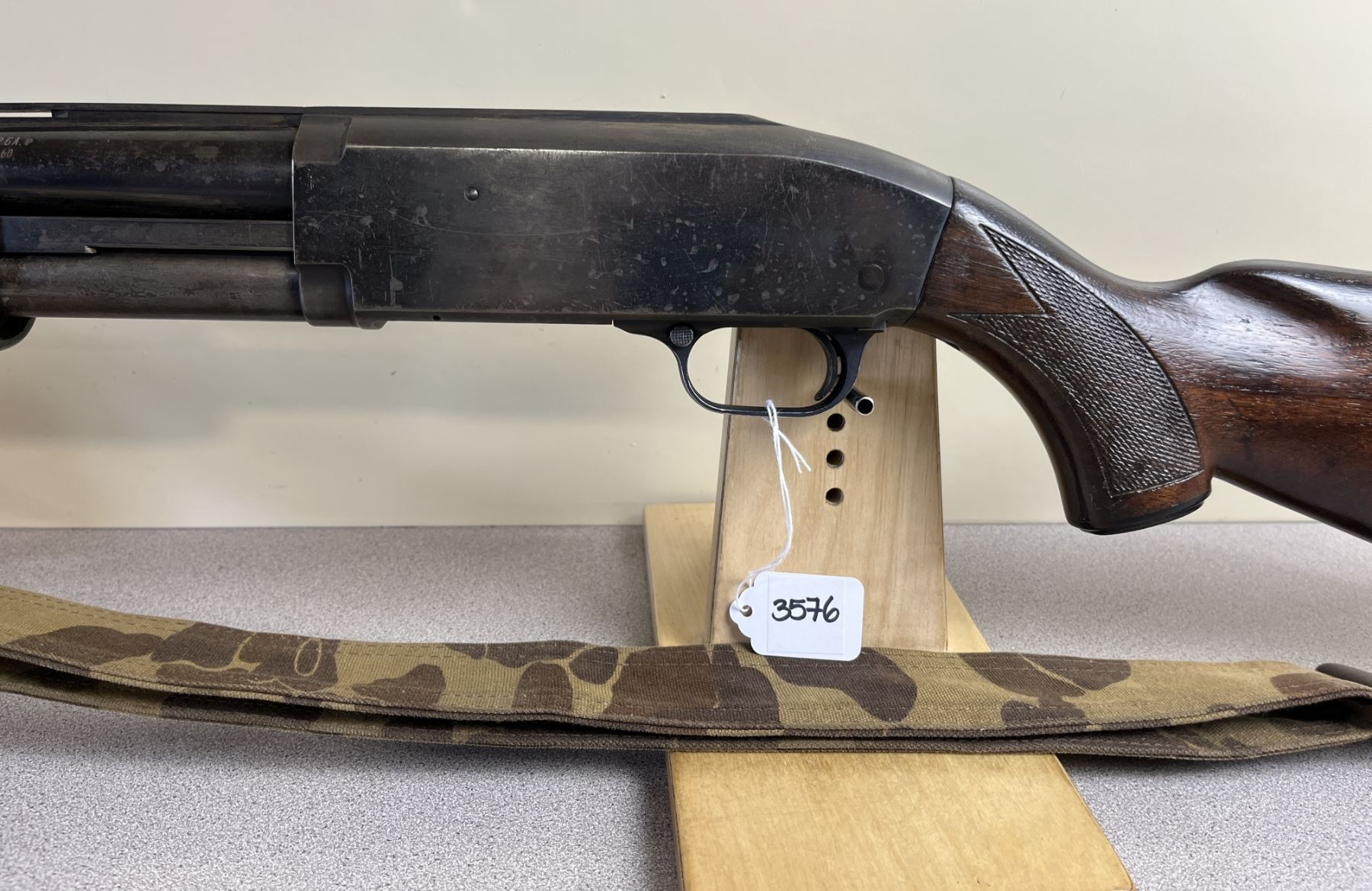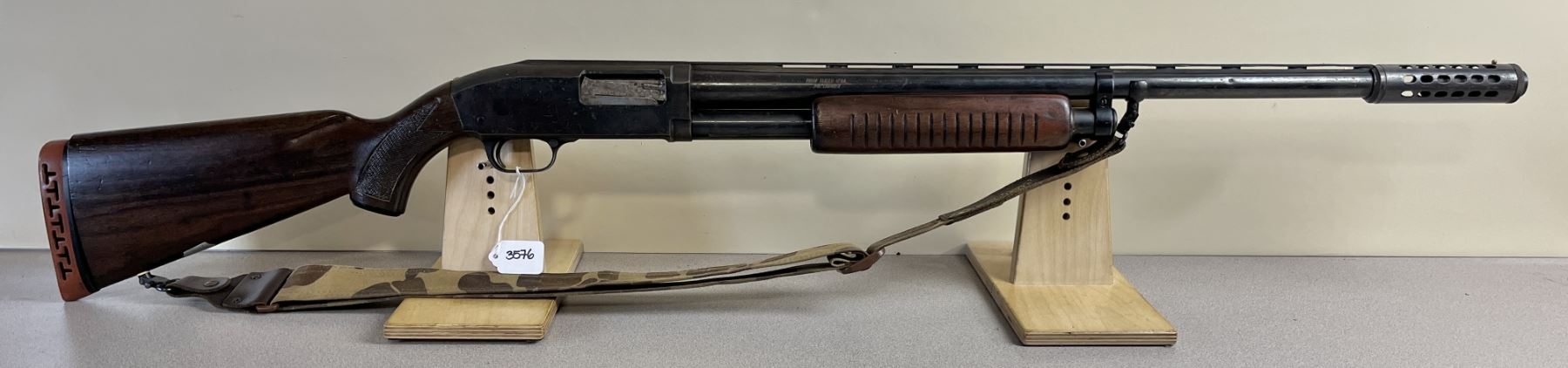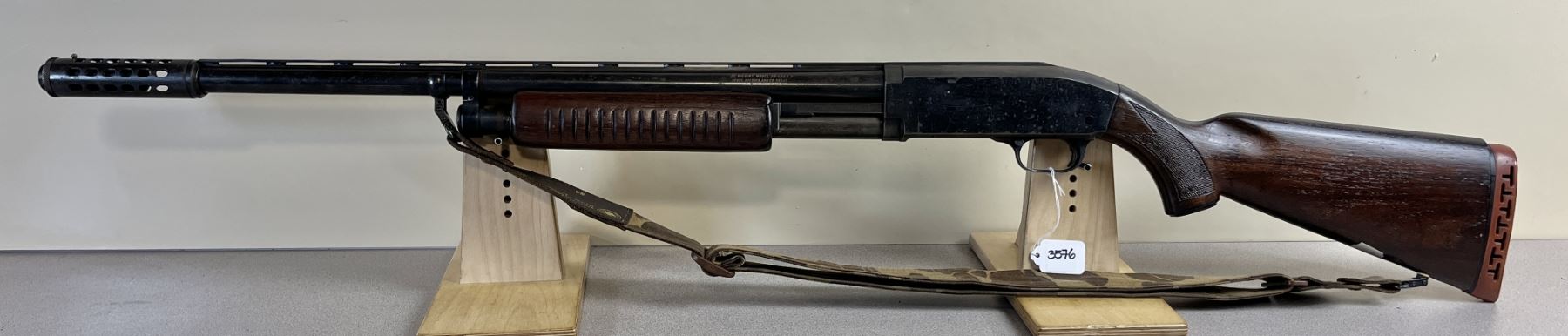 CONDITION: F - G OVERALL. BORE G. SPECS: 27IN VENT RIB BBL W/ MUZZLEBRAKE. 2 3/4IN CHAMBER. EXTRAS: CAMEO SLING. S/N: NONE.