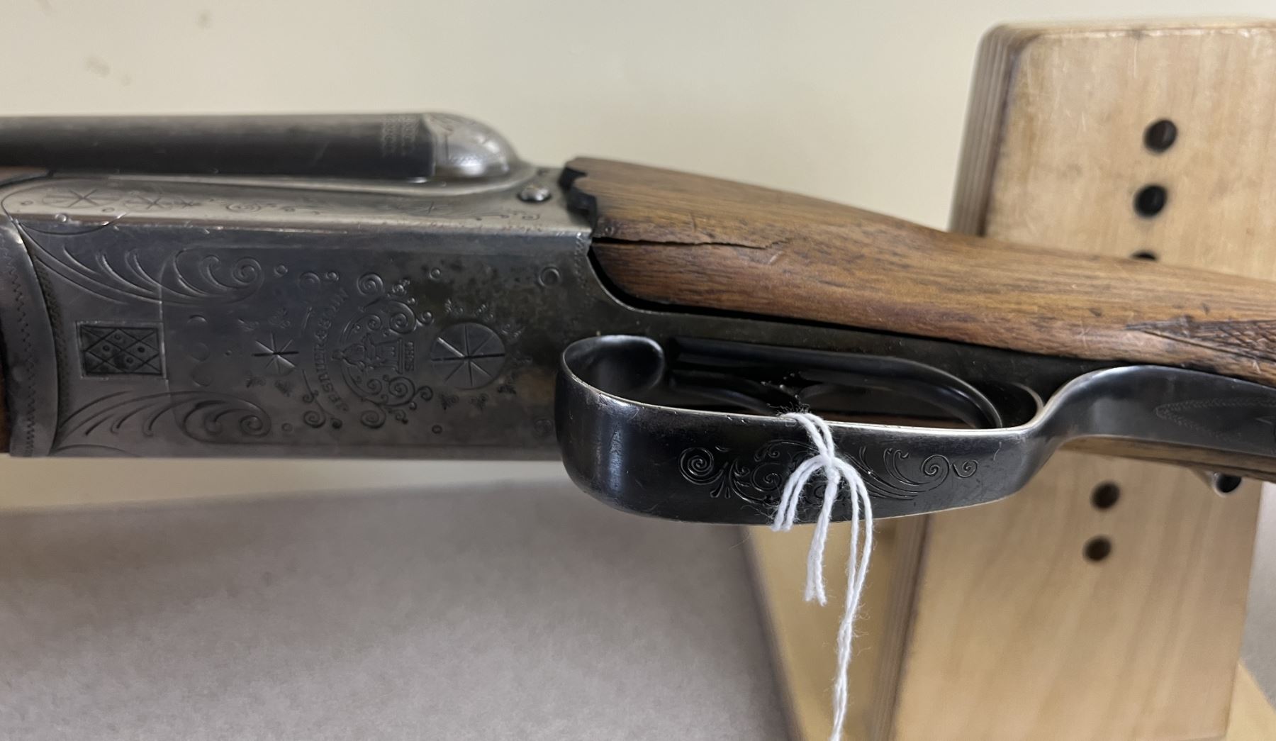 CONDITION: F-G OVERALL INCL BORES. SMALL STOCK CRACK NEAR TRIGGER GUARD ON LEFT SIDE. SPECS: 32IN SXS BBLS. FULL BY FULL CHOKE. EXTRAS: NONE. S/N: 508898.