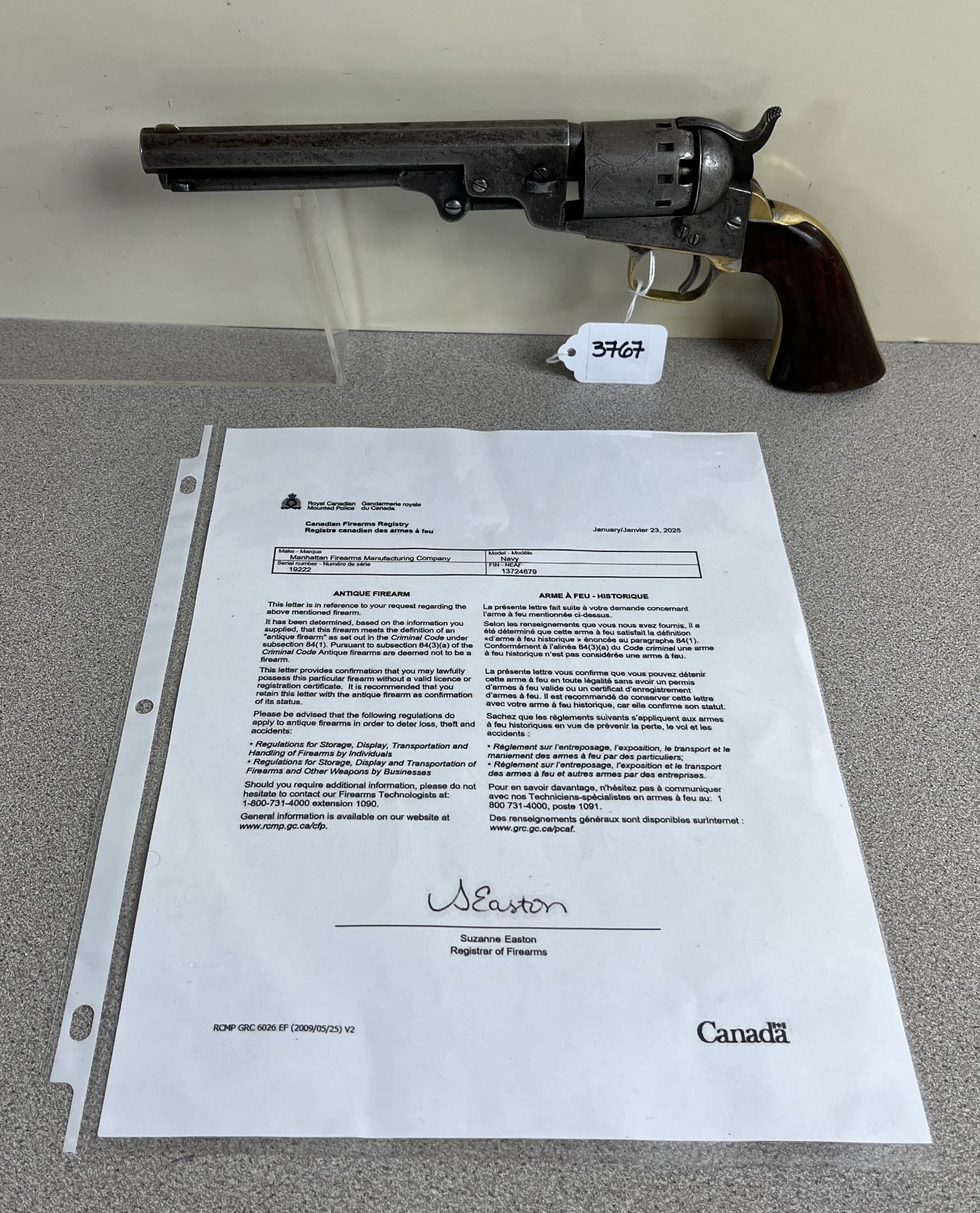 Lot 3767 MANHATTAN FIREARMS CO. NAVY IN .36 BP - ANTIQUE CLASS