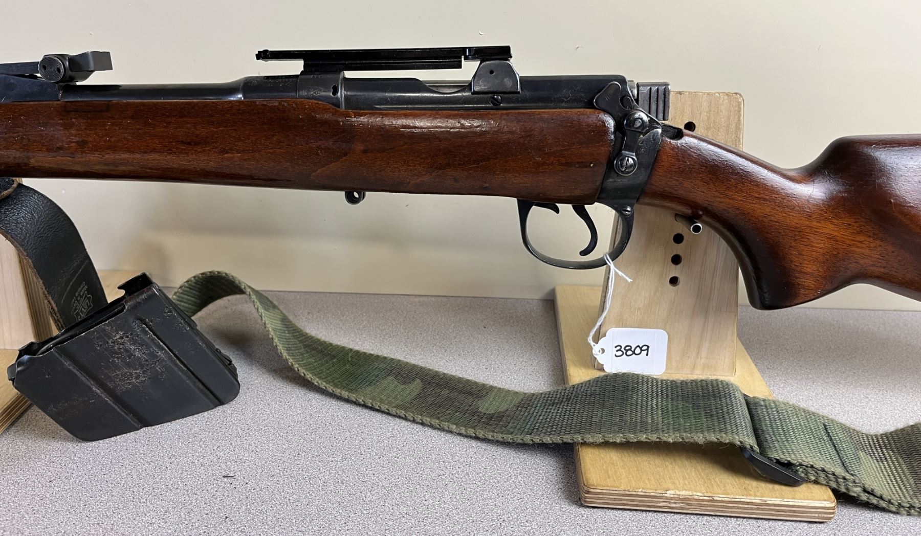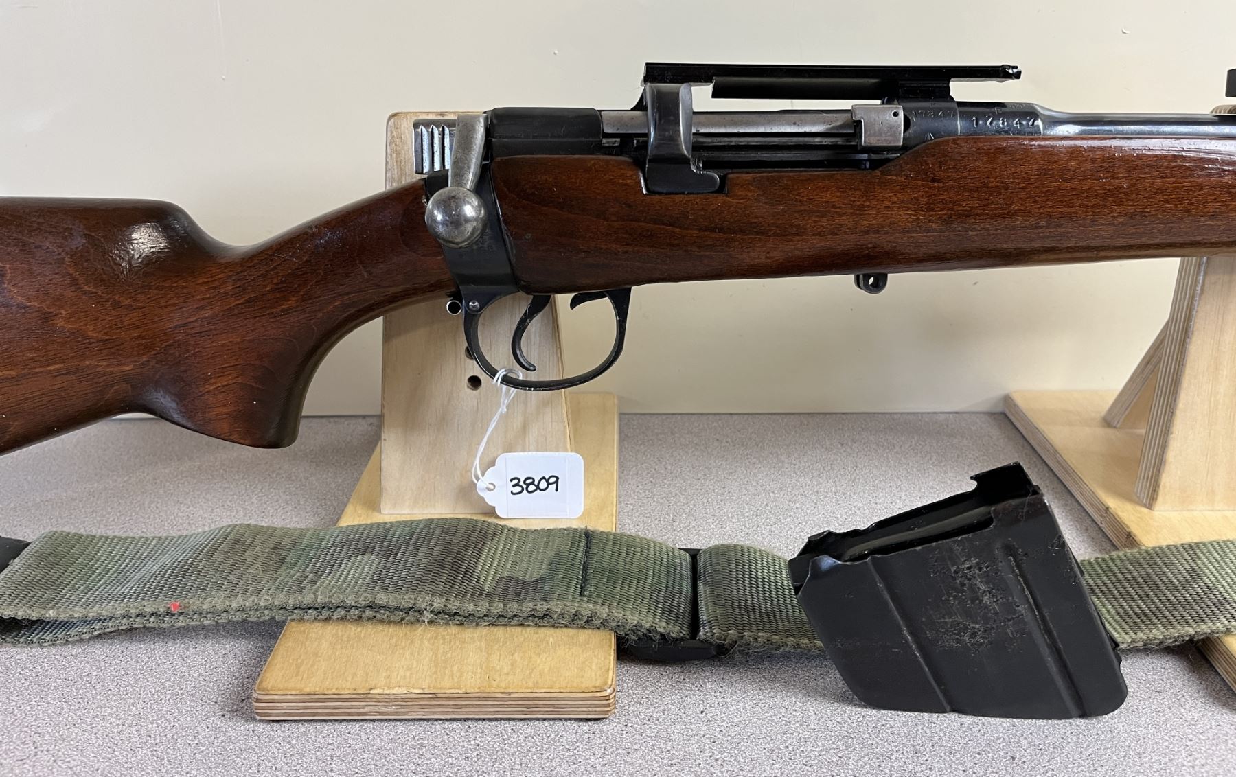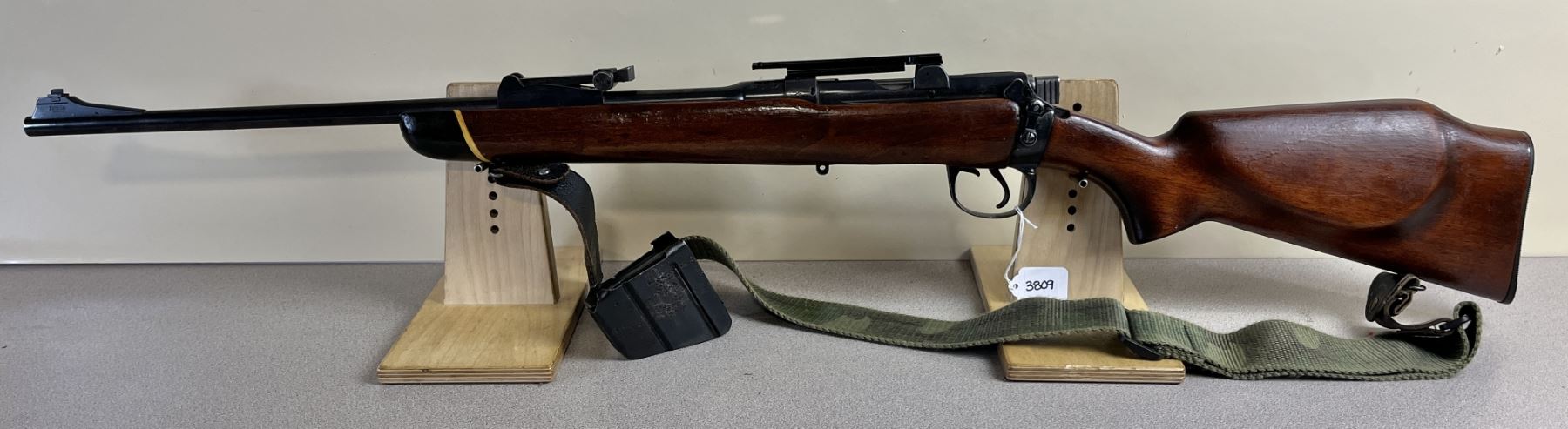 CONDITION: G OVERALL. BORE F. SPECS: 22IN BBL W/ IRON SIGHTS. 1X MAG. EXTRA: CAMO SLING. SCOPE BASE. S/N: 178487.