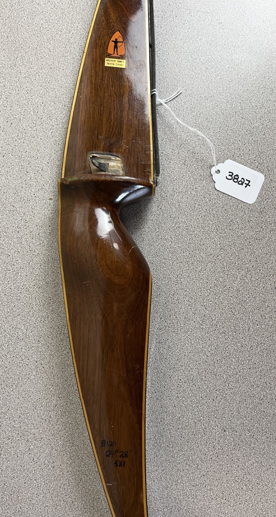 CONDITION: F OVERALL. SPECS: W/OUT STRING. 24LBS. 28IN DRAW. RIGHT HANDED. EXTRAS: NONE. S/N: 581.