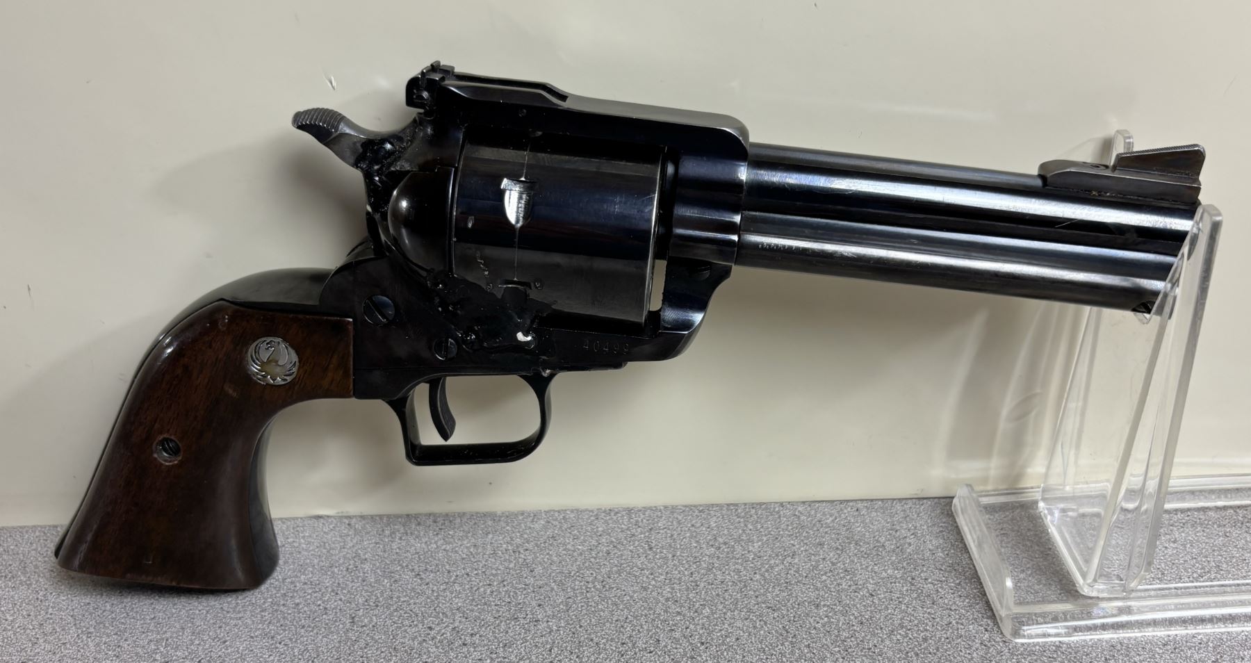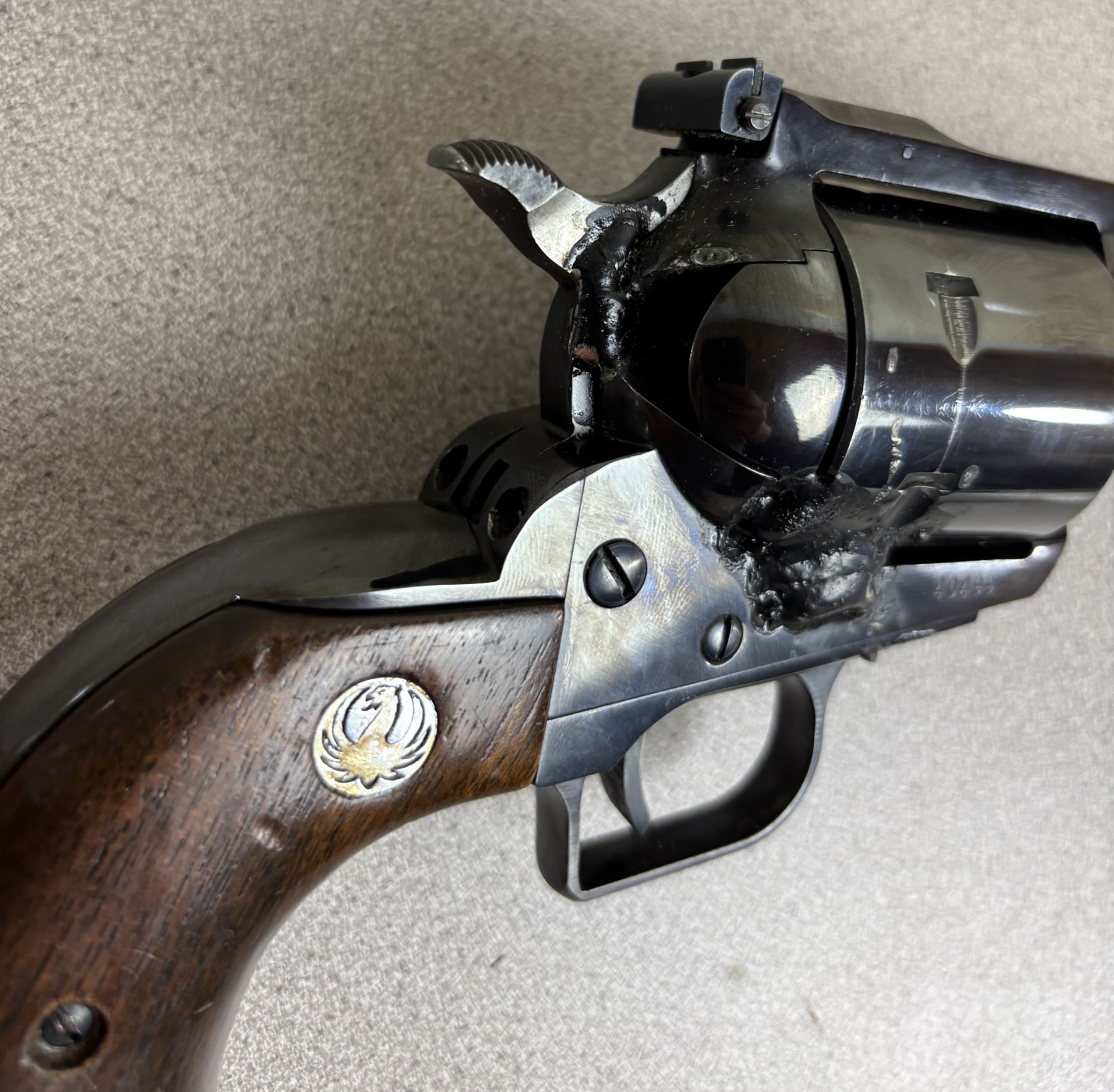 CONDITION: PROFESSIONAL GUNSMITH WELD. SPECS: 120 MM BARREL. 6 SHOT REVOLVER. EXTRAS: NONE. S/N: 40499.