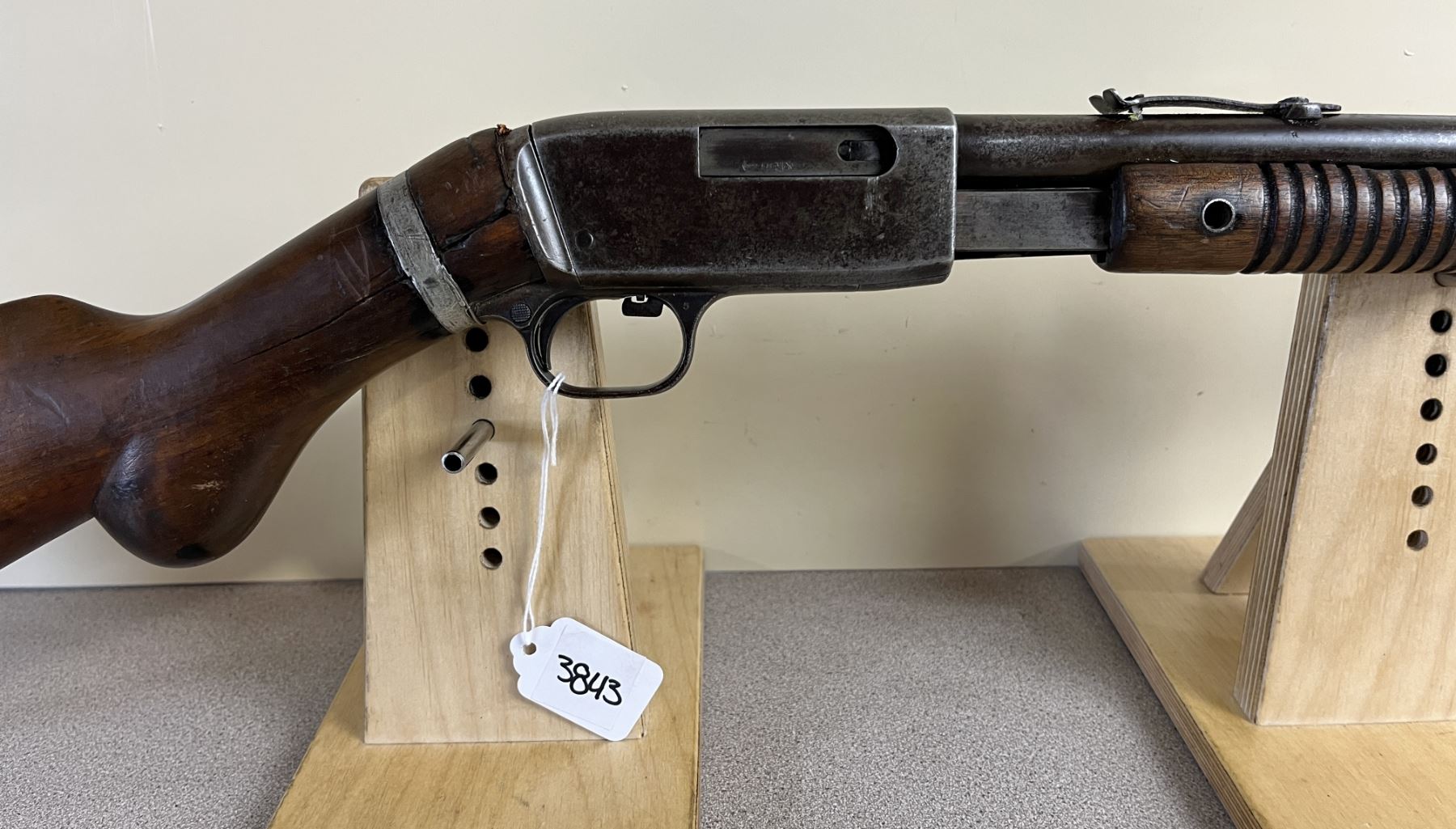 CONDITION: F OVERALL INCL BORE. STOCK CRACKED & CHIPPED AT WRIST. MISSING RECOIL PLATE. SPECS: 22IN BBL W/ IRON SIGHTS. EXTRAS: NONE. S/N: 16452.