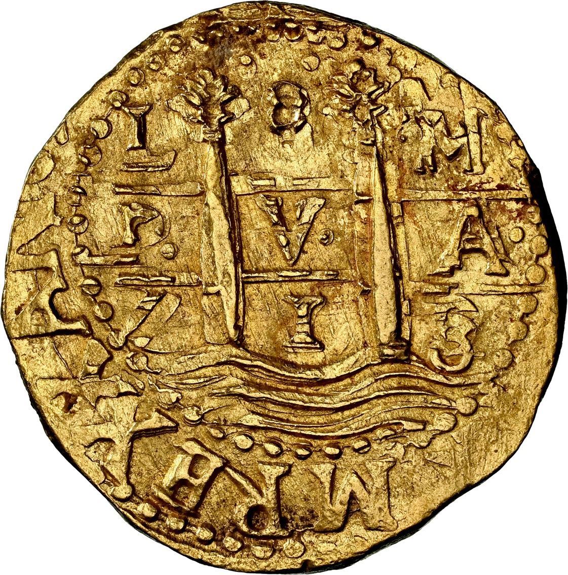 Lot 32 PERU, Lima, gold cob 8 escudos, 1713/2 M, NGC MS 62 (1715 Fleet Shipwreck Label).