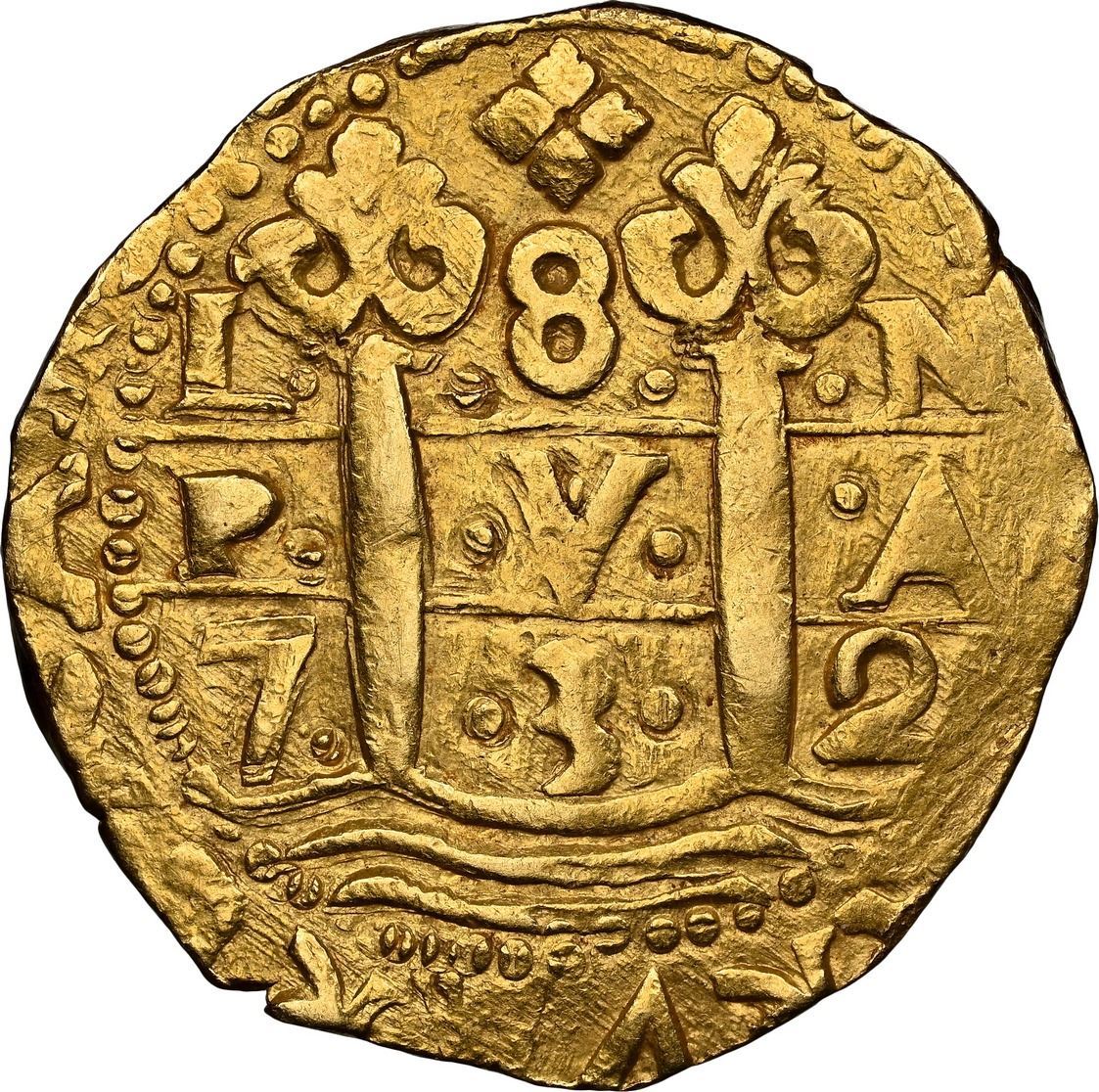 Lot 35 PERU, Lima, gold cob 8 escudos, 1732 N, NGC AU 53.
