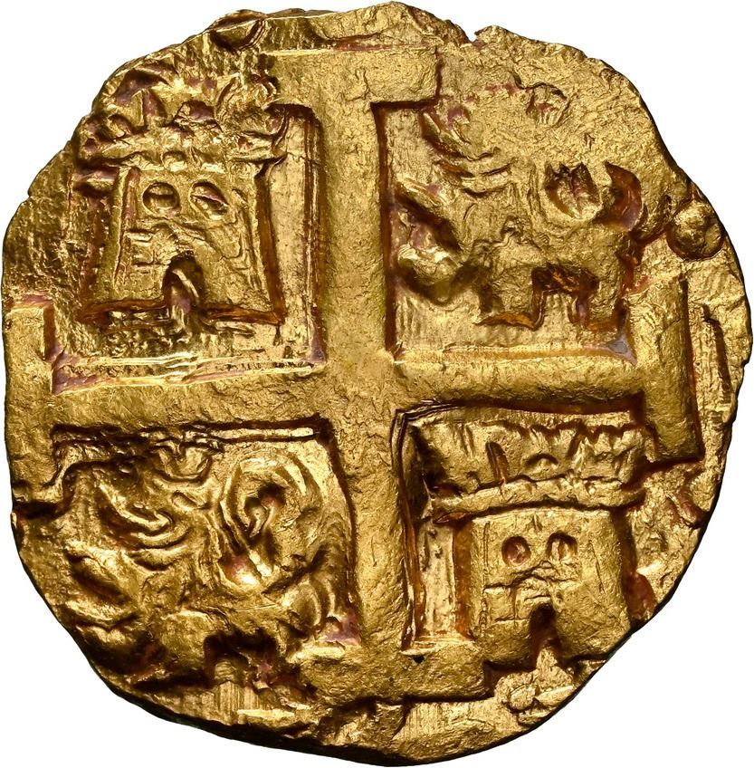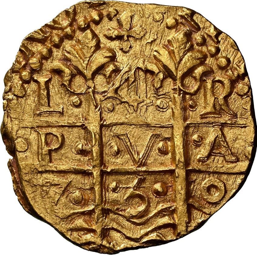 Lot 39 PERU, Lima, gold cob 4 escudos, 1750 R, mule with 8E cross side, NGC MS 64 (Shipwreck Blue Label), "