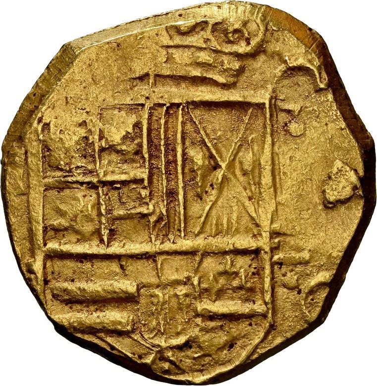 Lot 68 COLOMBIA, Bogotá, gold cob 2 escudos, (1672), assayer R ABOVE denomination II to right, very rare, N