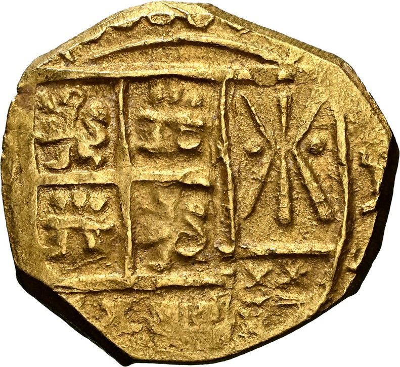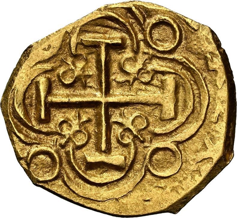 COLOMBIA, Bogotá, gold cob 2 escudos, Charles II posthumous, no assayer (Arce), NGC MS 63 (1715 Fleet Shipwreck Label). Restrepo-M66.32; S-B24; Cal-Type 242 (under Ph. V); Fr-4a; KM-14.2. 6.82 grams. Superb full cross and nearly full shield (lions upright in transposed quadrants), less luster than most but quite bold all over. From the 1715 Fleet.