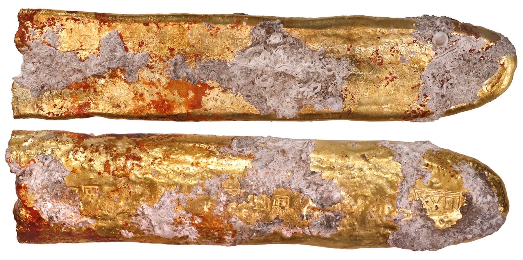 Lot 85 Gold "finger" bar, 668 grams, marked with fineness XVII• (17¼K), ex-"Golden Fleece wreck" (