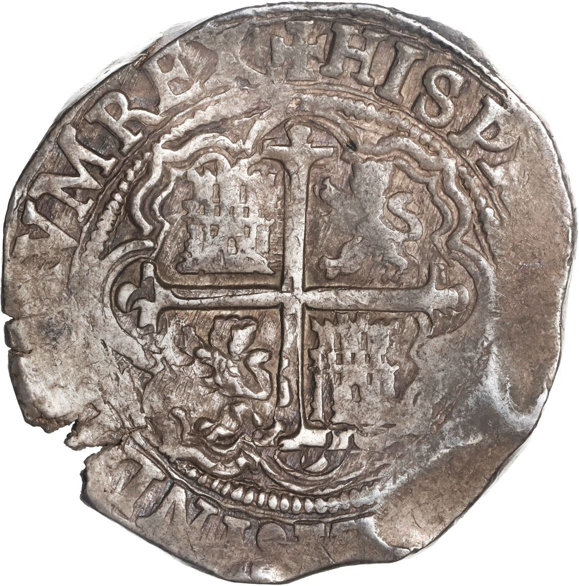 Lot 519 MEXICO, Mexico City, cob 4 reales, Philip II, assayer O below mintmark oM to left, ex-Hubbard.