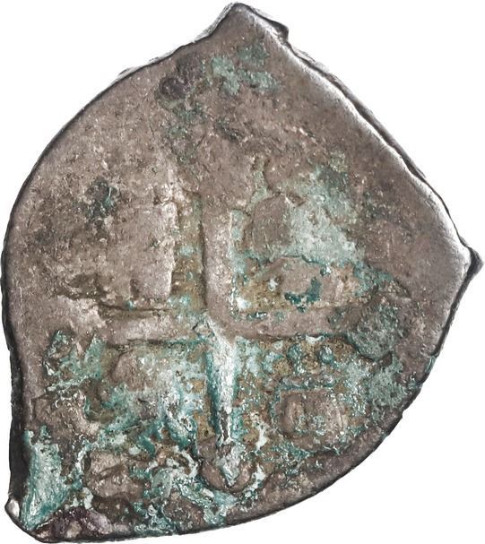 MEXICO, Mexico City, cob ½ real, 1709 J, very rare, ex-Hubbard. S-M22; KM-24; Cal-218. 1.52 grams. Full 170 of date but last digit weak, full oMJ, well-centered full monogram, lightly toned Good with lots of green encrustation. Pedigreed to the Clyde Hubbard Collection, with his tag.