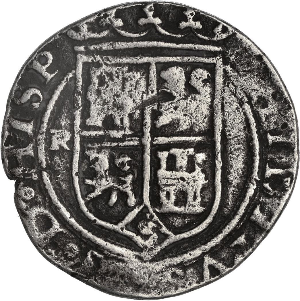 Lot 566 PERU, Lima, 2 reales, Philip II, assayer R (Rincón) to left, motto PL-VSVL-T above denomination.