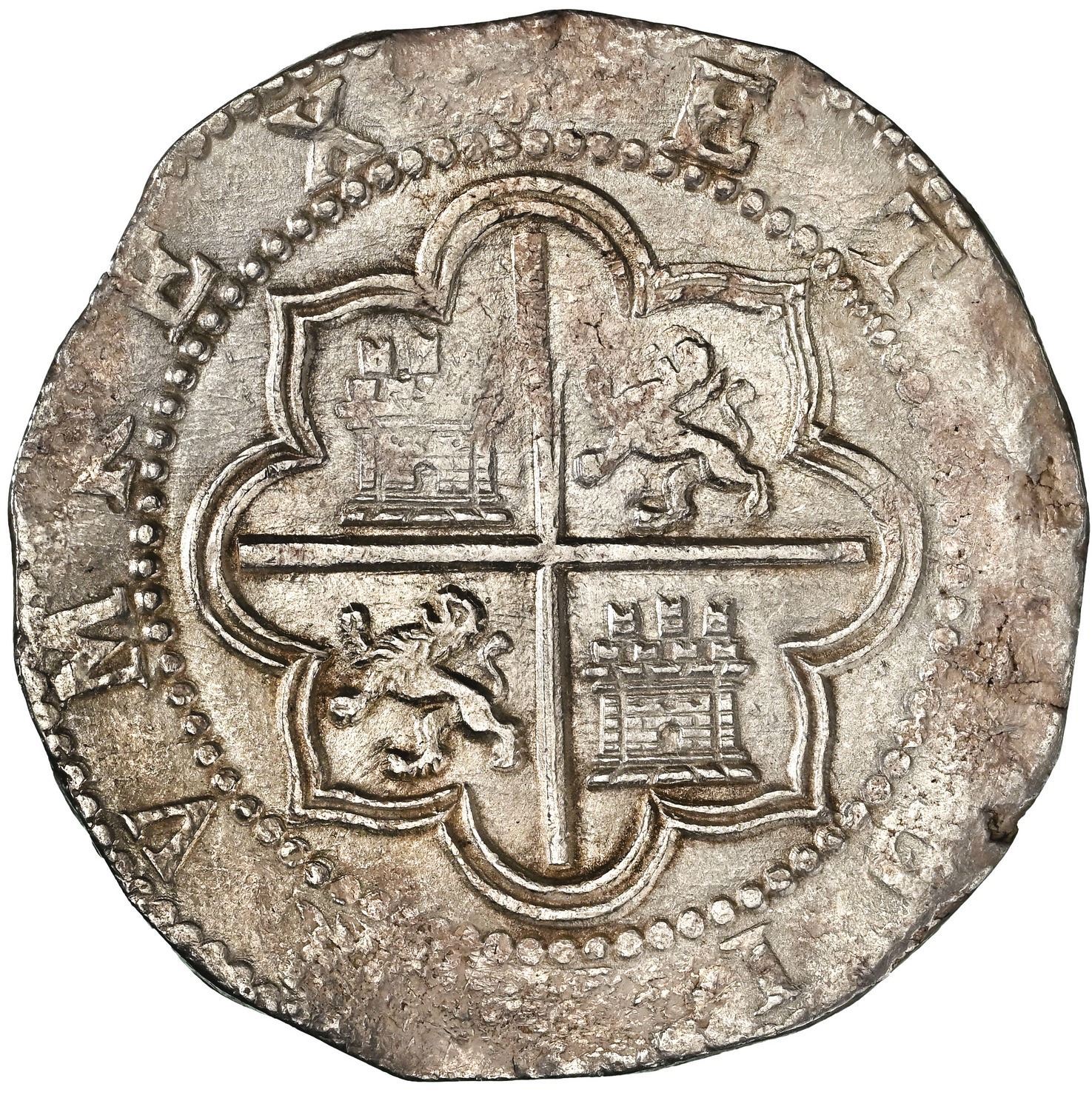 Lot 567 PERU, Lima, cob 8 reales, Philip II, assayer Diego de la Torre, P-8 (flat top) to left, *-oD to righ