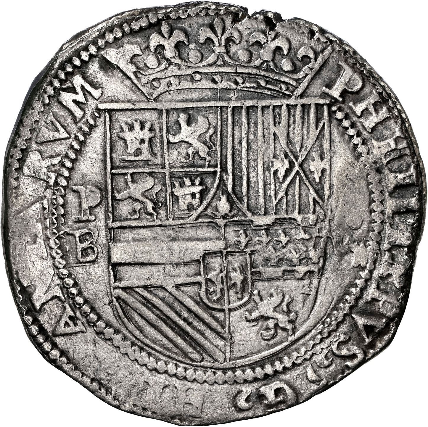 Lot 583 BOLIVIA, Potosí, cob 8 reales, Philip II, assayer B (1st period), "heavy" lions in cross, rare, NGC