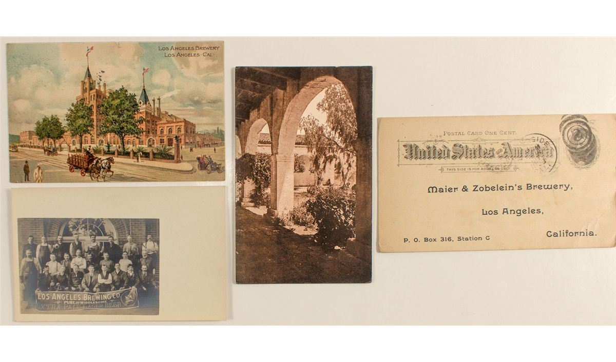 From the Ken Prag collection: 4 postcards--3 of the Los Angeles Brewing Co. and 1 freight notice to Maier & Zobelein's Brewery (also Los Angeles).