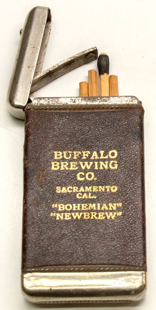 "Buffalo Brewing Co. / Sacramento.Cal. / Bohemian New Brew.' Holds actual mathes. Cool!