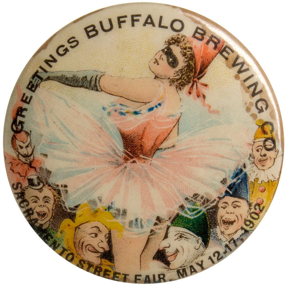 1 1/2". Picture of dancing clown lady. Very colorful. Don't Miss It. Street Fair 1902. And a visit to our brewery, most modern....