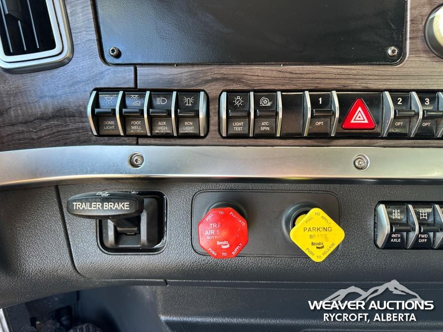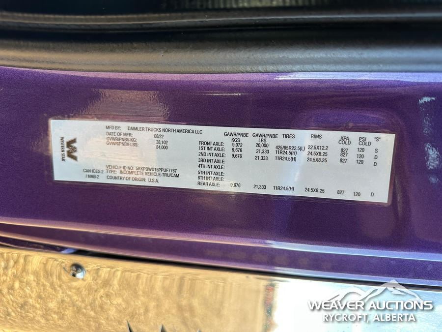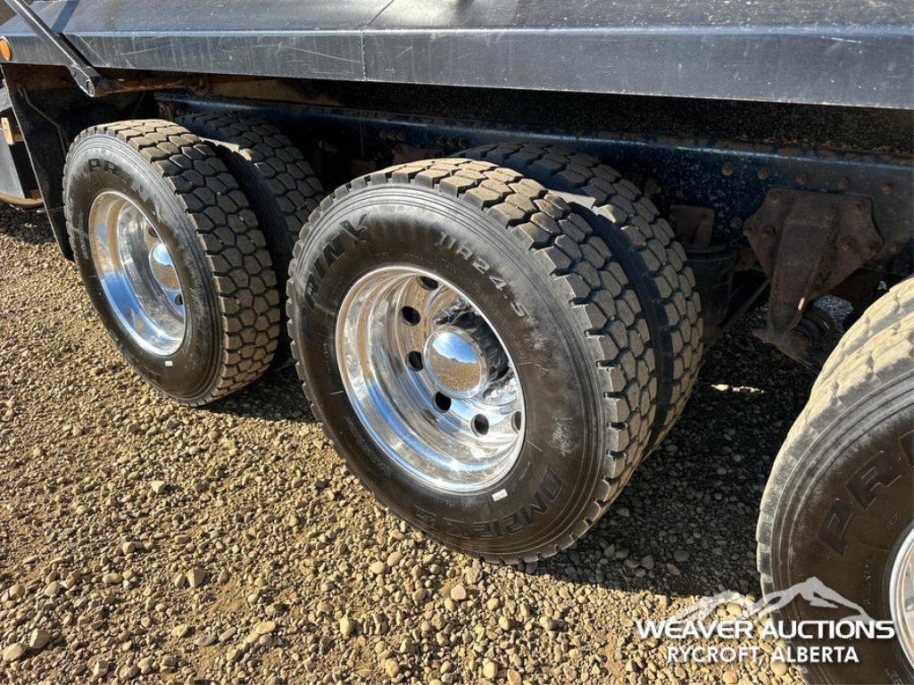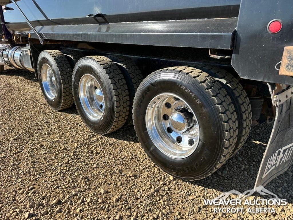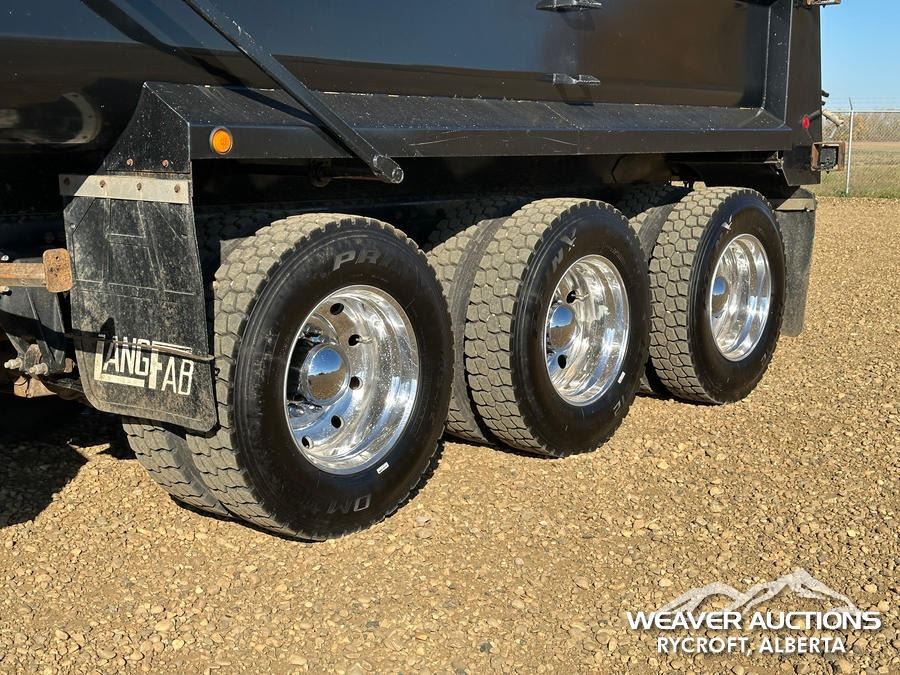 Specifications: DETROIT DD16 600 HP ENGINE, US EPA LABEL, REQUIRES DIESEL EXHAUST FLUID, 3,350 HRS. ENGINE HRS, AIR CONDITIONER, CRUISE CONTROL, POWER WINDOWS, ENGINE BRAKE, DIFFERENTIAL LOCK, 20000 LB FRONT AXLE, MERITOR RZ-69-166 REARS, 4.30:1 AXLE RATIO, 86000 LB GVWR, AIR RIDE CAB, ALUMINUM WHEELS, 425/65R22.5 FRONT TIRES, 11R22.5 REAR TIRES, DUAL STEERING BOXES, AIR RIDE SUSPENSION, 267 IN WHEELBASE, PTO, 2023 LANGFAB 21 FT. LONG X 65 IN. HIGH BODY, STEEL DUMP BODY, VIBRATOR BOX, ELECTRIC ROLL TARP, REAR HYDRAULICS, PINTLE HITCH