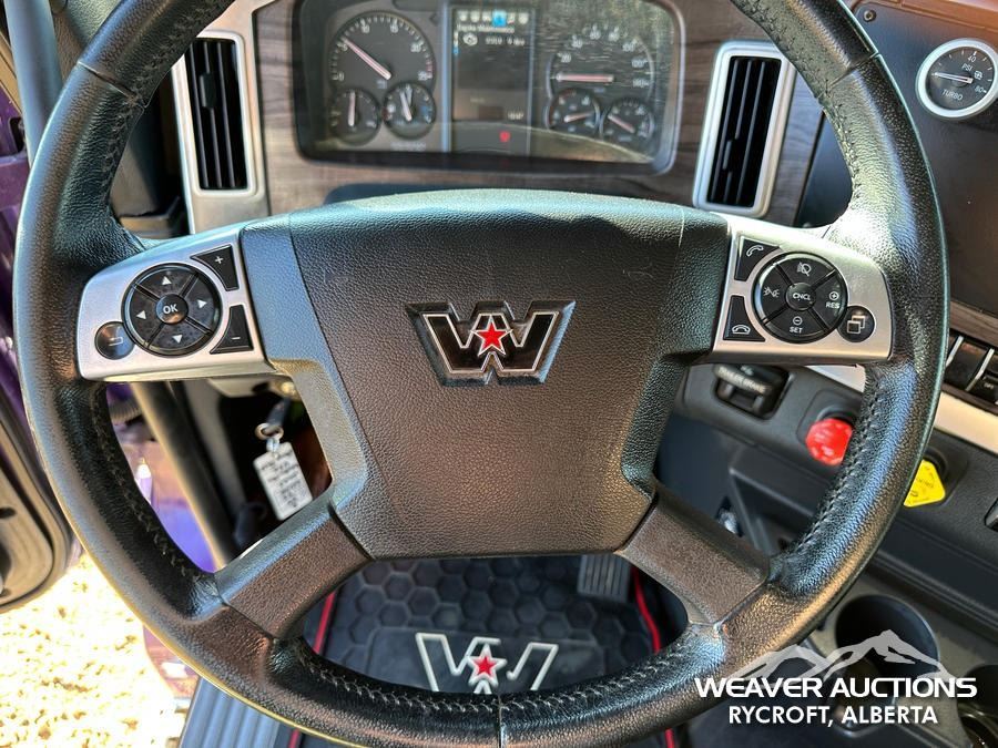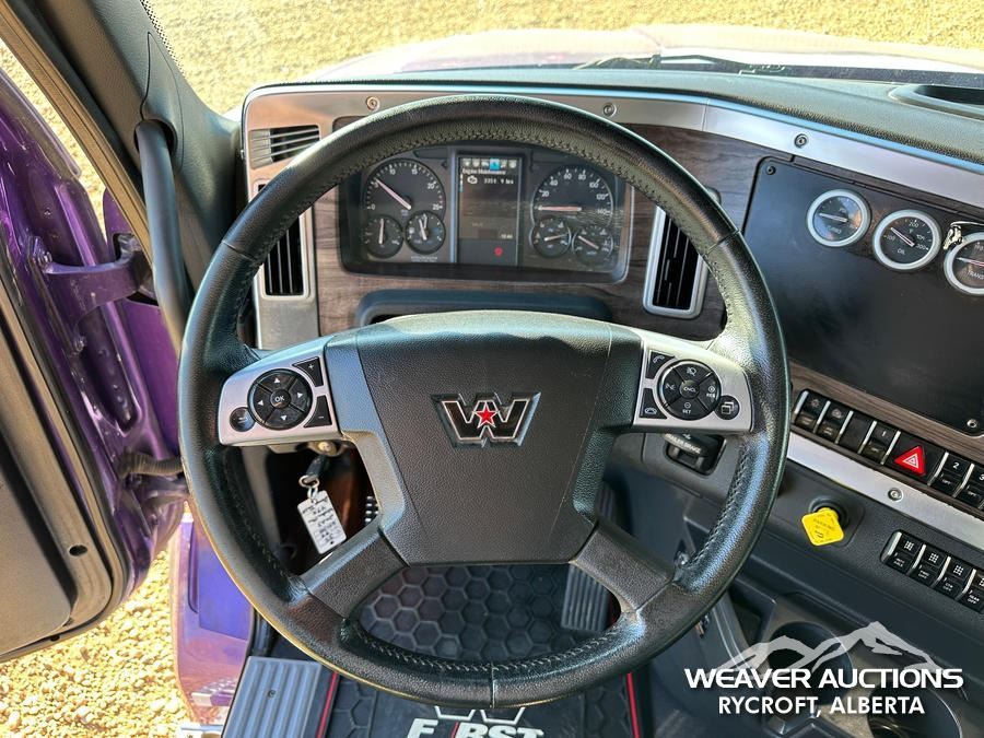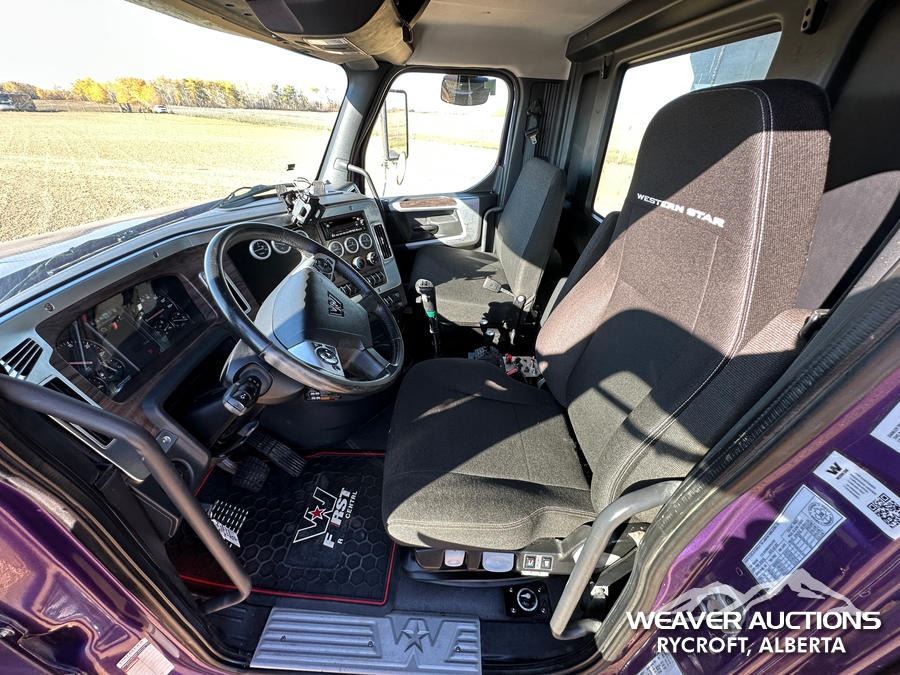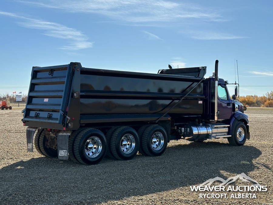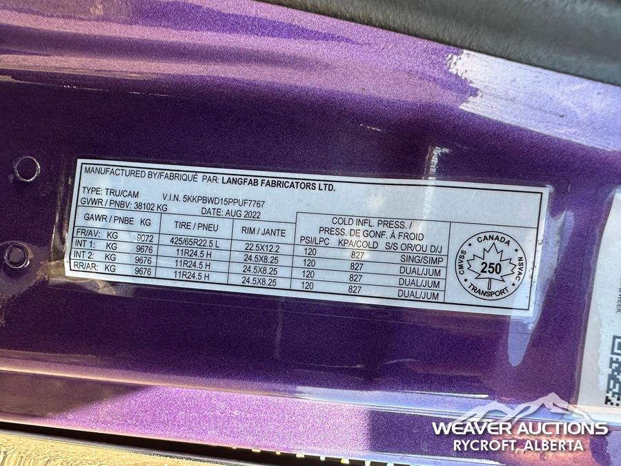 Specifications: DETROIT DD16 600 HP ENGINE, US EPA LABEL, REQUIRES DIESEL EXHAUST FLUID, 3,350 HRS. ENGINE HRS, AIR CONDITIONER, CRUISE CONTROL, POWER WINDOWS, ENGINE BRAKE, DIFFERENTIAL LOCK, 20000 LB FRONT AXLE, MERITOR RZ-69-166 REARS, 4.30:1 AXLE RATIO, 86000 LB GVWR, AIR RIDE CAB, ALUMINUM WHEELS, 425/65R22.5 FRONT TIRES, 11R22.5 REAR TIRES, DUAL STEERING BOXES, AIR RIDE SUSPENSION, 267 IN WHEELBASE, PTO, 2023 LANGFAB 21 FT. LONG X 65 IN. HIGH BODY, STEEL DUMP BODY, VIBRATOR BOX, ELECTRIC ROLL TARP, REAR HYDRAULICS, PINTLE HITCH