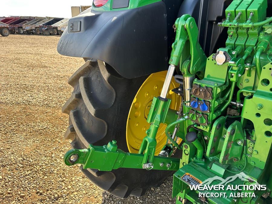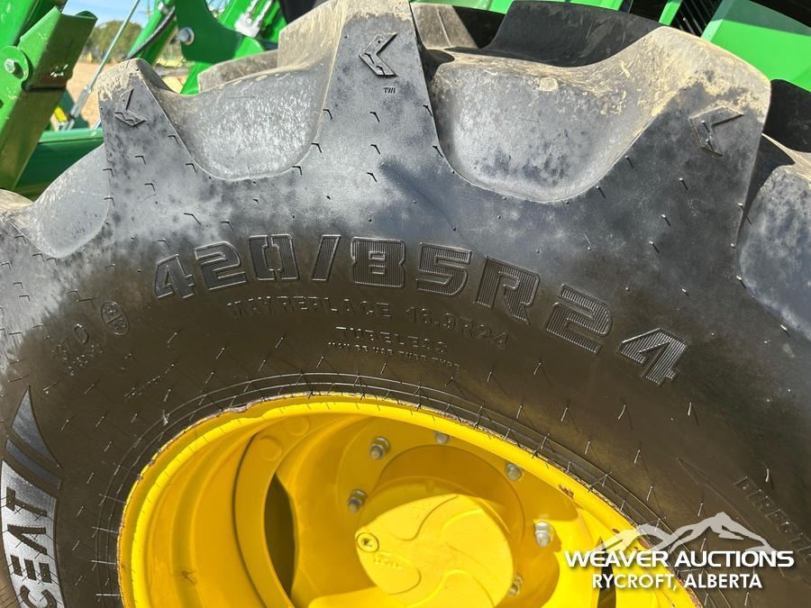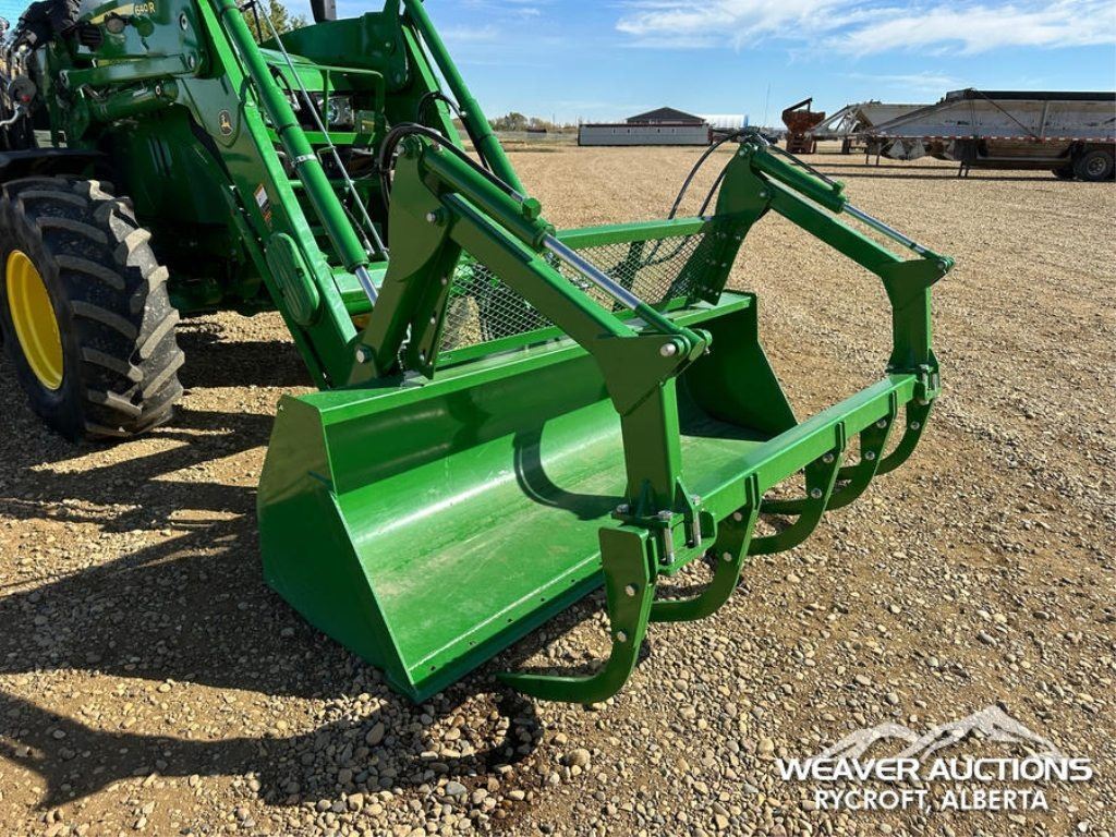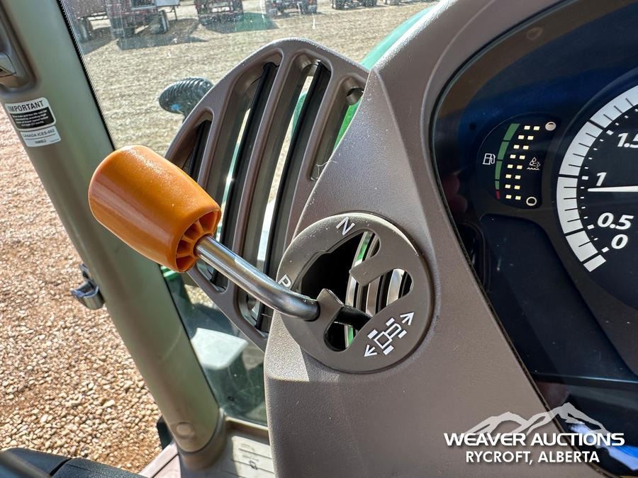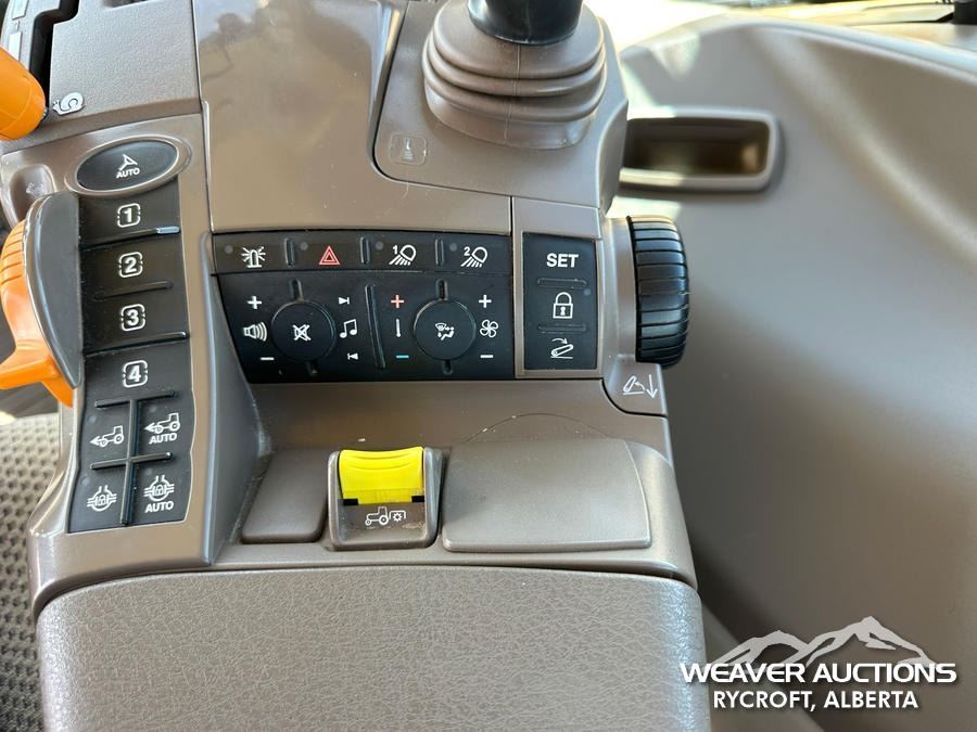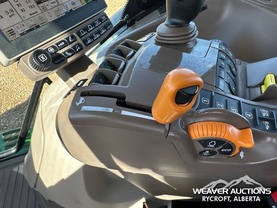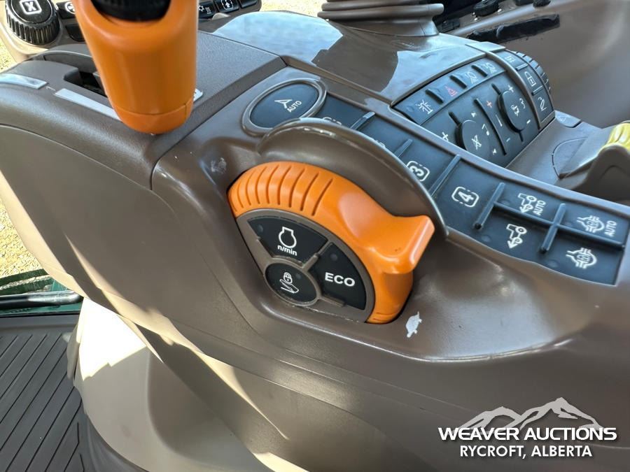 Specifications: C/W JOHN DEERE 640R FRONT END LOADER AND GRAPPLE, IVT TRANSMISSION, PREMIUM CAB, LEFT HAND REVERSER, 4 ELETRONIC REAR SCV'S, 540/1000 PTO, 3PT HITCH WITH FENDER REMOTES, A/C, ELETRIC LOADER JOYSTICK, SUNROOF, ELECTRIC POWER MIRRORS, FRONT AND REAR SUN SHADES, INSTRUCTOR SEAT, 460/8 R38 BKT REAR TIRES, 420/ 85R24 BKT FRONT TIRES