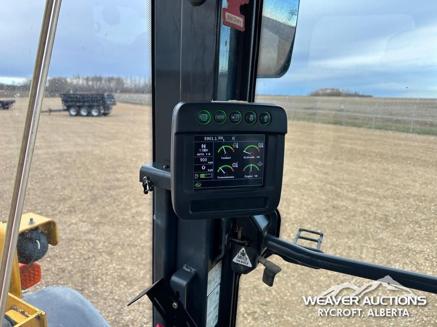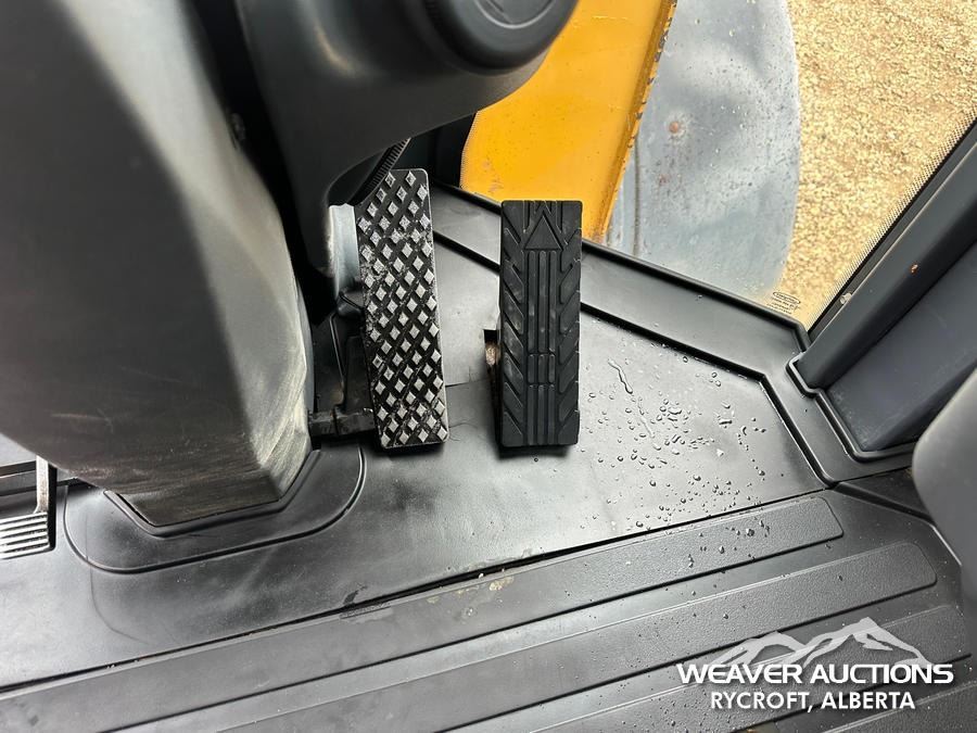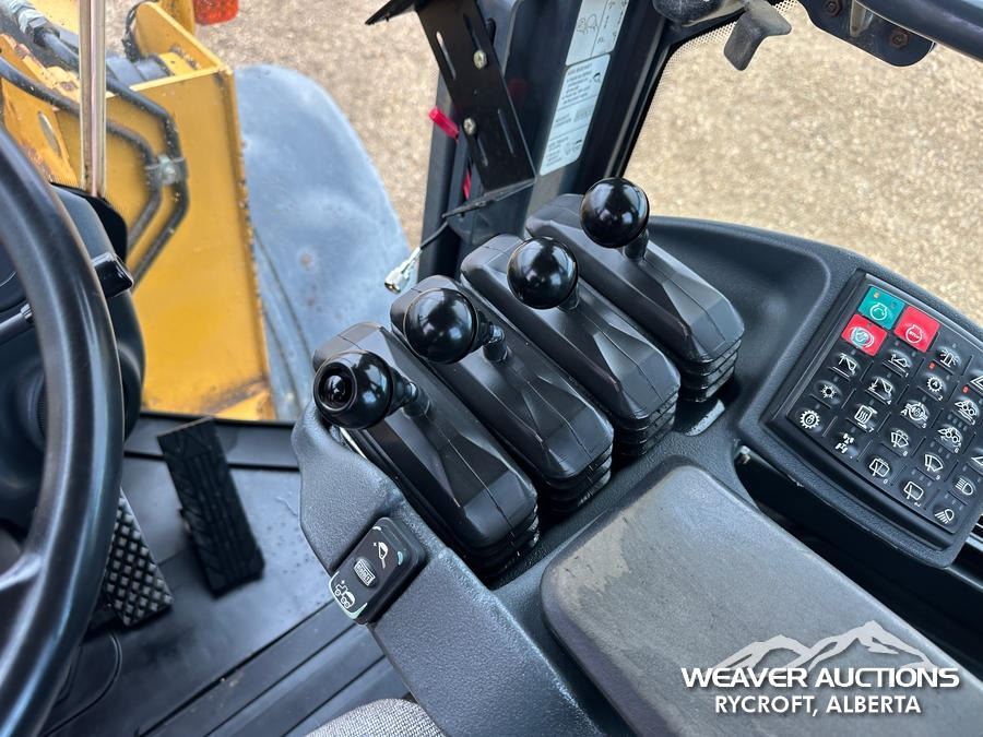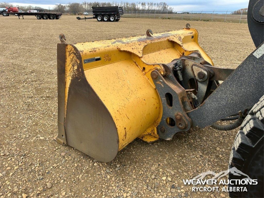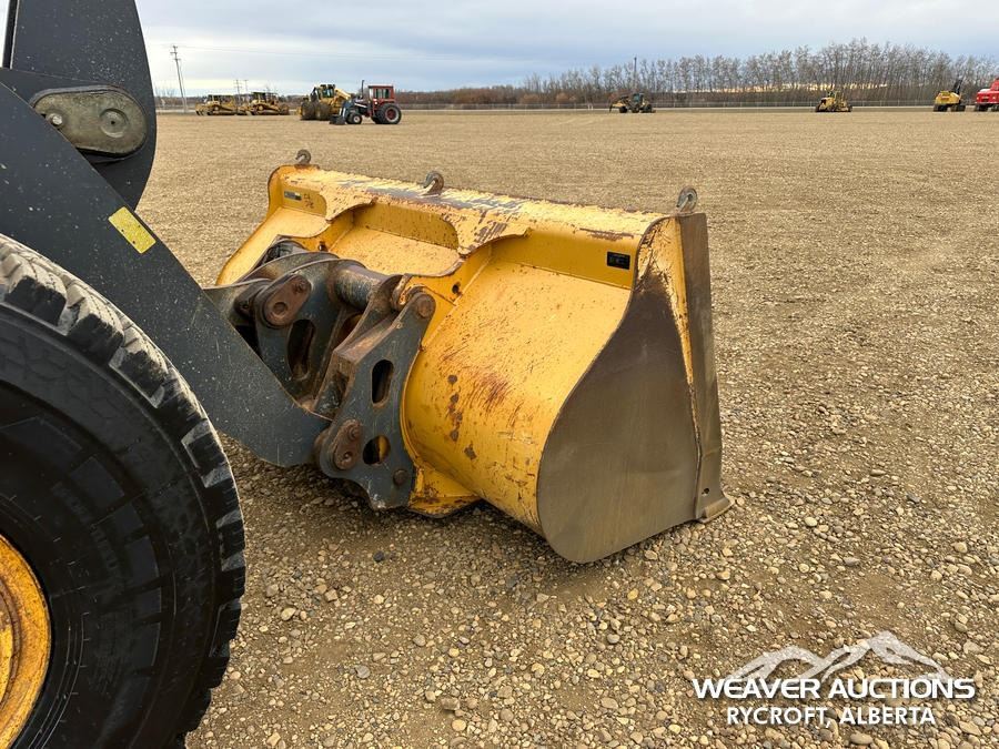 Specifications: ENCLOSED CAB, AIR CONDITIONER, AIR RIDE SEAT, RIDE CONTROL, AUTOSHIFT, TRACTION CONTROL, AUXILIARY HYDRAULICS, HYDRAULIC COUPLER, 119.5 IN BUCKET, 23.5R25 TIRES